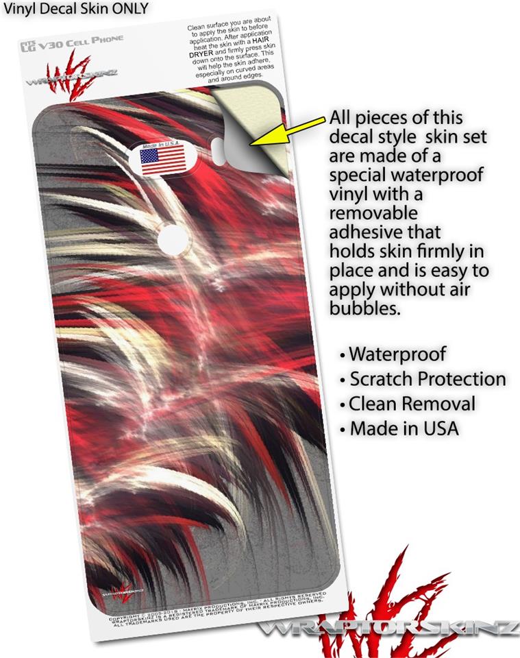 WraptorSkinz® skin wraps for the LG V30 are printed using superb photo quality designs and vibrant colors printed with special fade resistant inks that last even in direct sun for years. WraptorSkinz are a composite of two layers of commercial grade materials. The bottom layer is a soft, flexible vinyl with a special removable adhesive that is easily positioned, applied without air bubbles. Next we print the bottom layer with UV protected, fade resistant inks that deliver superb photo quality designs in vibrant colors. Finally, we bond a professional grade laminate over the entire LG V30 skin adding a glossy protective finish.
