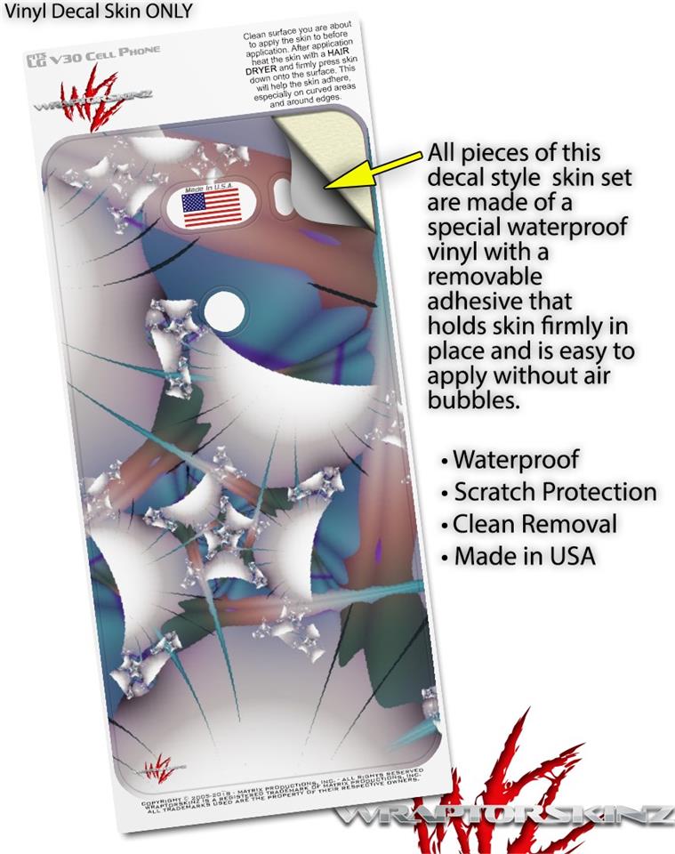 WraptorSkinz® skin wraps for the LG V30 are printed using superb photo quality designs and vibrant colors printed with special fade resistant inks that last even in direct sun for years. WraptorSkinz are a composite of two layers of commercial grade materials. The bottom layer is a soft, flexible vinyl with a special removable adhesive that is easily positioned, applied without air bubbles. Next we print the bottom layer with UV protected, fade resistant inks that deliver superb photo quality designs in vibrant colors. Finally, we bond a professional grade laminate over the entire LG V30 skin adding a glossy protective finish.