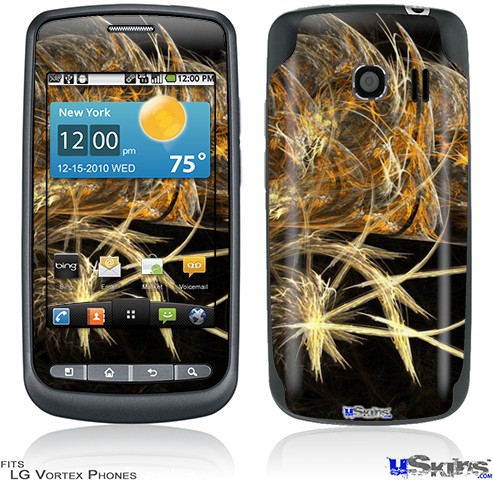 Skin covers front and back of LG Vortex cell phone.