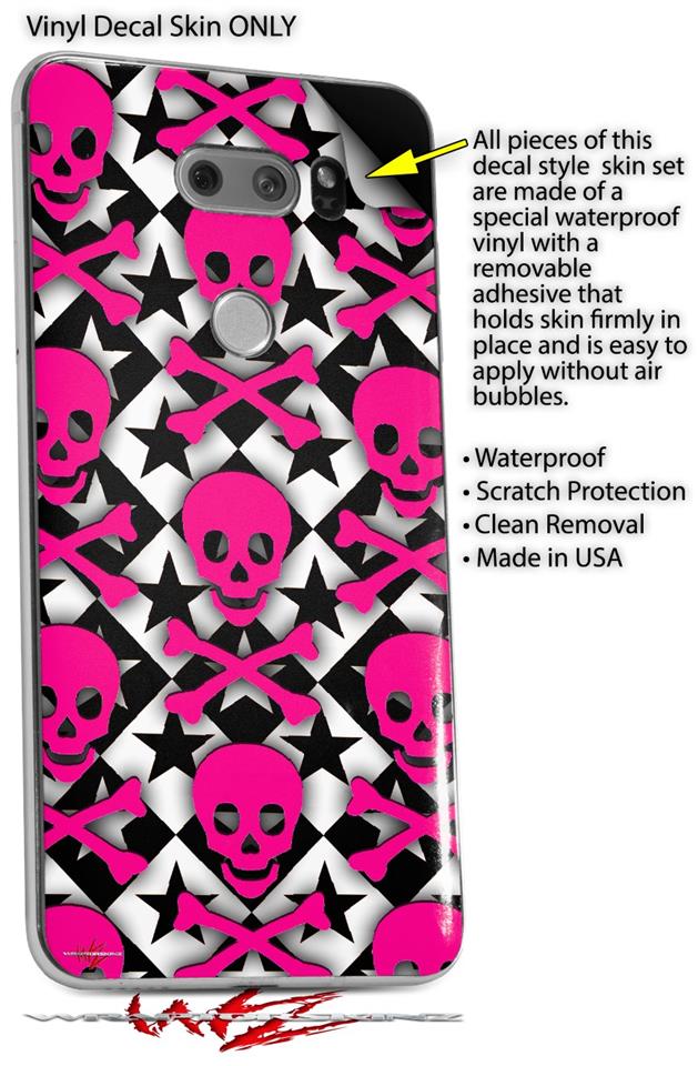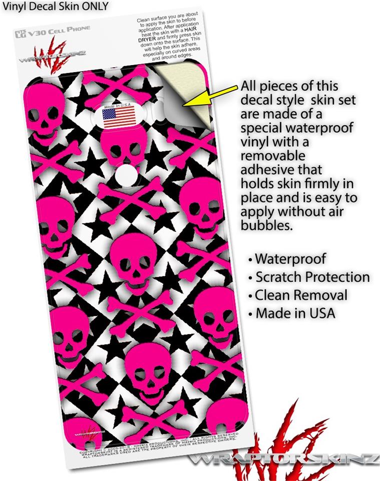 Skin Decal Wrap for LG V30 Pink Skulls and Stars