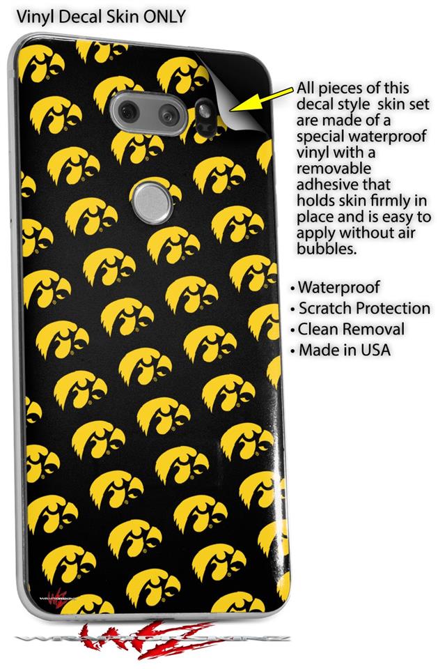 Skin Decal Wrap for LG V30 Iowa Hawkeyes Tigerhawk Tiled 06 Gold on Black