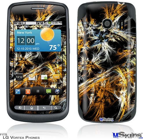 Skin covers front and back of LG Vortex cell phone.
