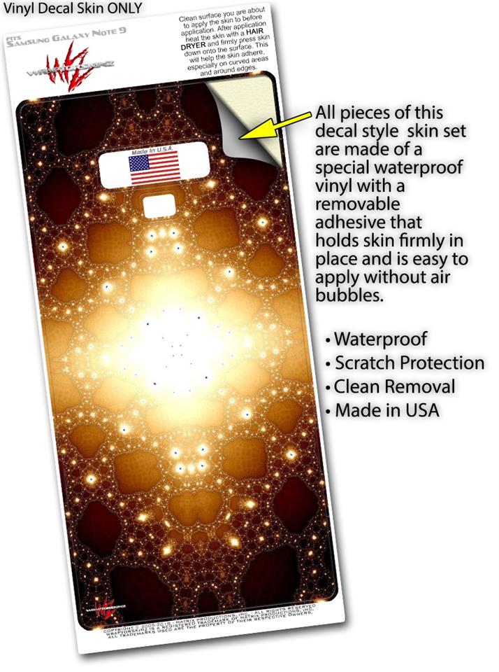 WraptorSkinz® skin wraps for the Samsung Galaxy Note 9 are printed using superb photo quality designs and vibrant colors printed with special fade resistant inks that last even in direct sun for years. WraptorSkinz are a composite of two layers of commercial grade materials. The bottom layer is a soft, flexible vinyl with a special removable adhesive that is easily positioned, applied without air bubbles. Next, we print the bottom layer with UV protected, fade resistant inks that deliver superb photo quality designs in vibrant colors. Finally, we bond a professional grade laminate over the entire Galaxy Note 9 skin adding a glossy protective finish. This product is not affiliated with or endorsed by Samsung.
