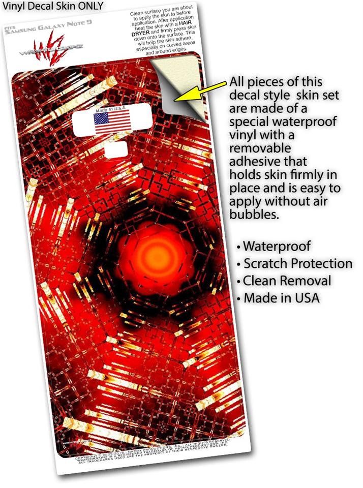WraptorSkinz® skin wraps for the Samsung Galaxy Note 9 are printed using superb photo quality designs and vibrant colors printed with special fade resistant inks that last even in direct sun for years. WraptorSkinz are a composite of two layers of commercial grade materials. The bottom layer is a soft, flexible vinyl with a special removable adhesive that is easily positioned, applied without air bubbles. Next, we print the bottom layer with UV protected, fade resistant inks that deliver superb photo quality designs in vibrant colors. Finally, we bond a professional grade laminate over the entire Galaxy Note 9 skin adding a glossy protective finish. This product is not affiliated with or endorsed by Samsung.
