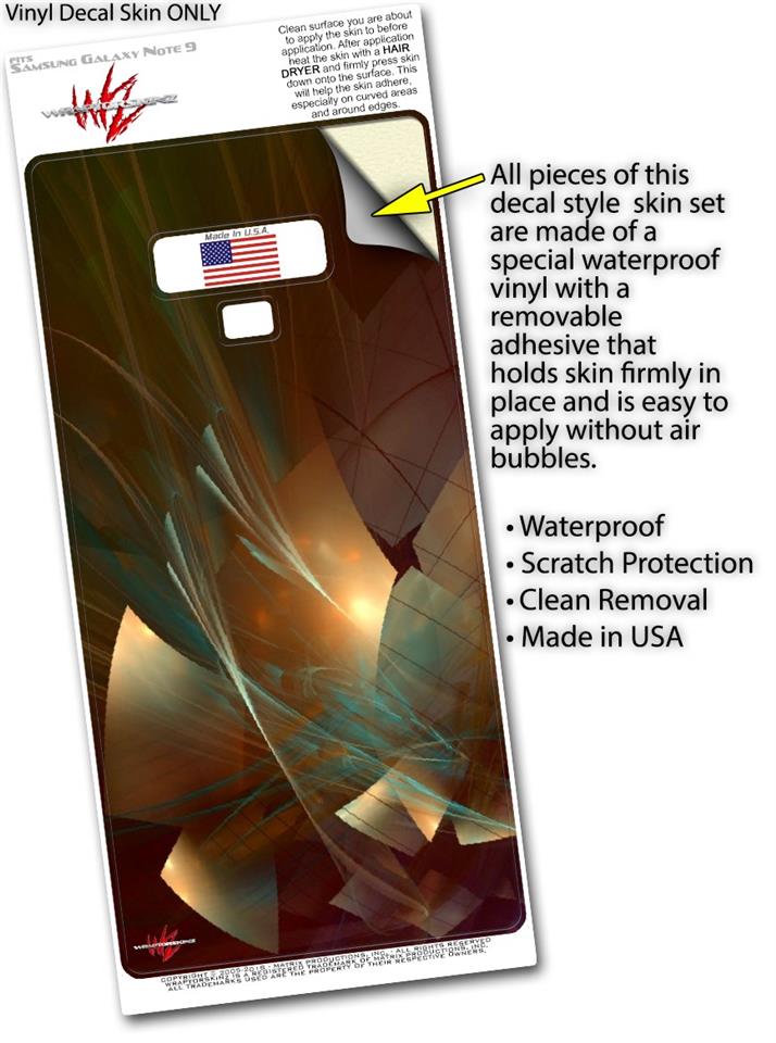 WraptorSkinz® skin wraps for the Samsung Galaxy Note 9 are printed using superb photo quality designs and vibrant colors printed with special fade resistant inks that last even in direct sun for years. WraptorSkinz are a composite of two layers of commercial grade materials. The bottom layer is a soft, flexible vinyl with a special removable adhesive that is easily positioned, applied without air bubbles. Next, we print the bottom layer with UV protected, fade resistant inks that deliver superb photo quality designs in vibrant colors. Finally, we bond a professional grade laminate over the entire Galaxy Note 9 skin adding a glossy protective finish. This product is not affiliated with or endorsed by Samsung.