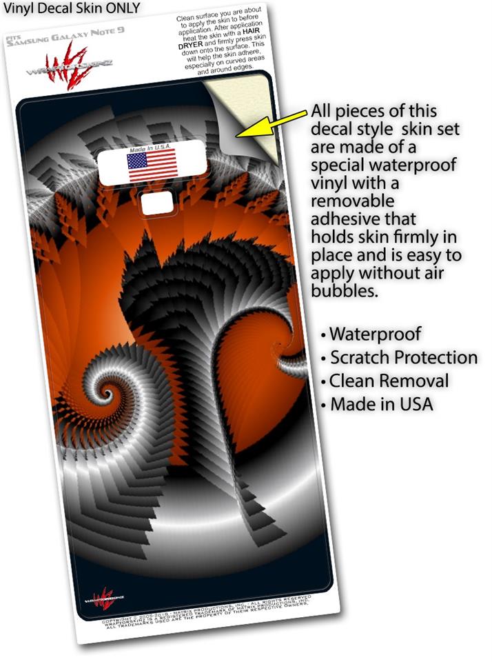 WraptorSkinz® skin wraps for the Samsung Galaxy Note 9 are printed using superb photo quality designs and vibrant colors printed with special fade resistant inks that last even in direct sun for years. WraptorSkinz are a composite of two layers of commercial grade materials. The bottom layer is a soft, flexible vinyl with a special removable adhesive that is easily positioned, applied without air bubbles. Next, we print the bottom layer with UV protected, fade resistant inks that deliver superb photo quality designs in vibrant colors. Finally, we bond a professional grade laminate over the entire Galaxy Note 9 skin adding a glossy protective finish. This product is not affiliated with or endorsed by Samsung.