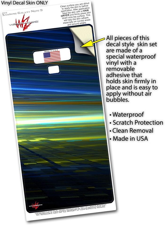 WraptorSkinz® skin wraps for the Samsung Galaxy Note 9 are printed using superb photo quality designs and vibrant colors printed with special fade resistant inks that last even in direct sun for years. WraptorSkinz are a composite of two layers of commercial grade materials. The bottom layer is a soft, flexible vinyl with a special removable adhesive that is easily positioned, applied without air bubbles. Next, we print the bottom layer with UV protected, fade resistant inks that deliver superb photo quality designs in vibrant colors. Finally, we bond a professional grade laminate over the entire Galaxy Note 9 skin adding a glossy protective finish. This product is not affiliated with or endorsed by Samsung.