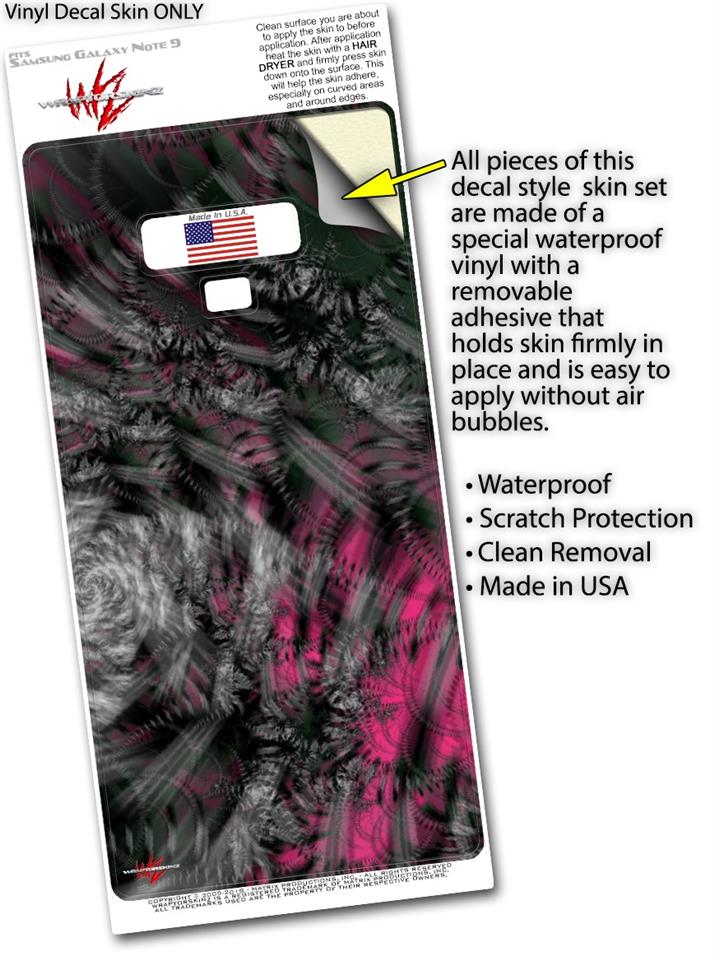 WraptorSkinz® skin wraps for the Samsung Galaxy Note 9 are printed using superb photo quality designs and vibrant colors printed with special fade resistant inks that last even in direct sun for years. WraptorSkinz are a composite of two layers of commercial grade materials. The bottom layer is a soft, flexible vinyl with a special removable adhesive that is easily positioned, applied without air bubbles. Next, we print the bottom layer with UV protected, fade resistant inks that deliver superb photo quality designs in vibrant colors. Finally, we bond a professional grade laminate over the entire Galaxy Note 9 skin adding a glossy protective finish. This product is not affiliated with or endorsed by Samsung.