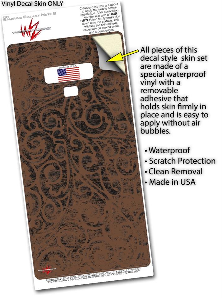 • Decal style vinyl skin covers back and part of the sides of Samsung Galaxy Note 9 - Not a hard case - Fits well with most Clear and TPU cases.
