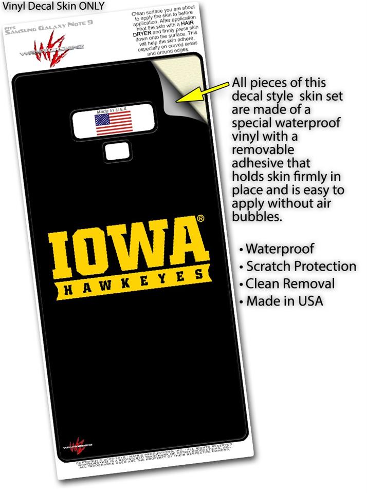Decal style Skin Wrap compatible with Samsung Galaxy Note 9 Iowa Hawkeyes 03 Black on Gold