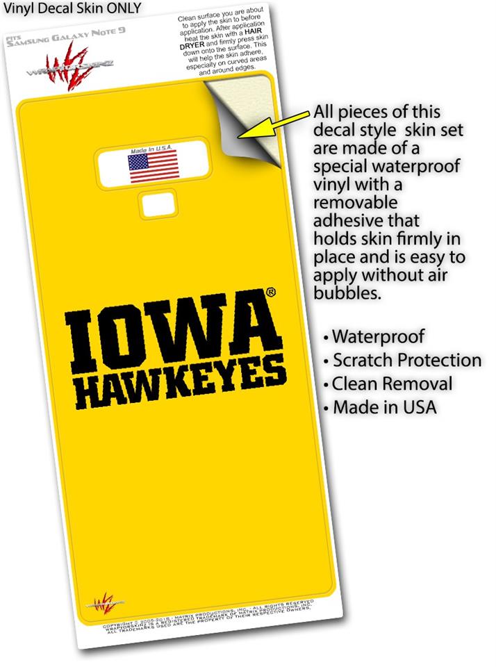 Decal style Skin Wrap compatible with Samsung Galaxy Note 9 Iowa Hawkeyes 01 Black on Gold
