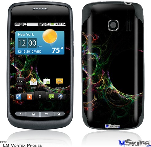 • Skin covers front and back of LG Vortex cell phone.