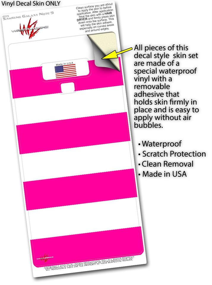 Decal style Skin Wrap compatible with Samsung Galaxy Note 9 Psycho Stripes Hot Pink and White