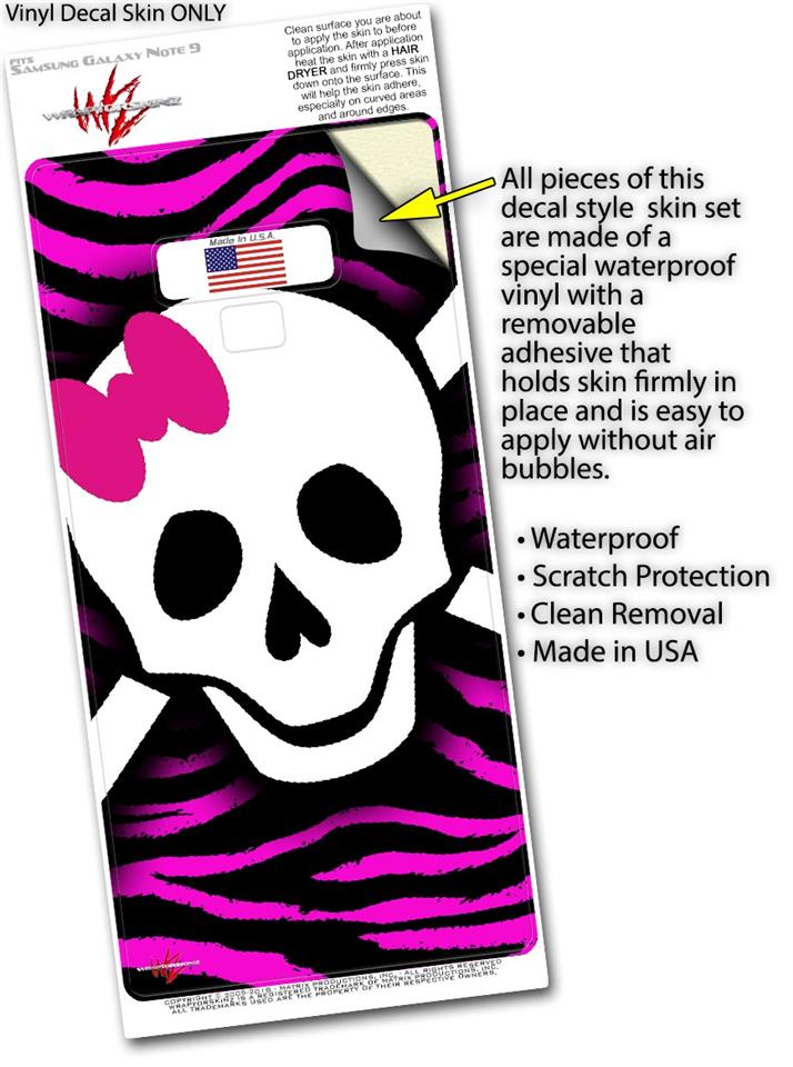 Decal style Skin Wrap compatible with Samsung Galaxy Note 9 Pink Zebra Skull