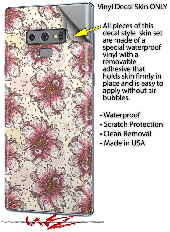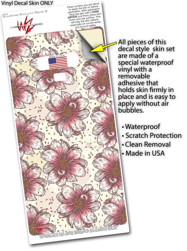 Decal style Skin Wrap compatible with Samsung Galaxy Note 9 Flowers Pattern 23