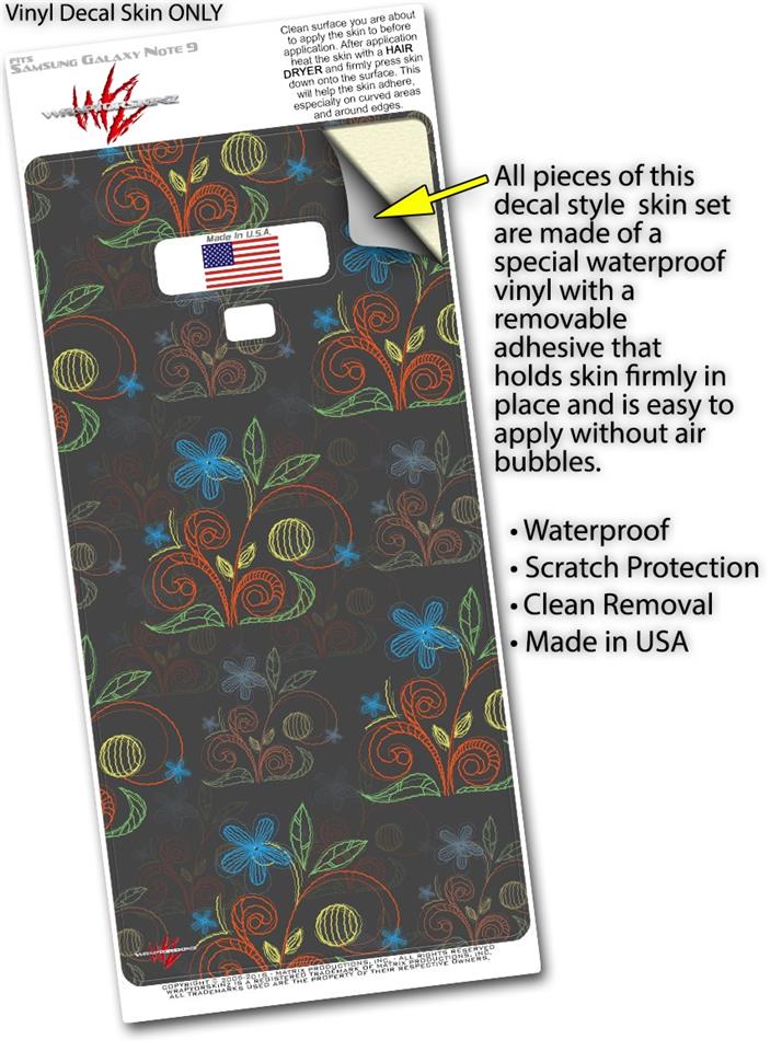 Decal style Skin Wrap compatible with Samsung Galaxy Note 9 Flowers Pattern 07