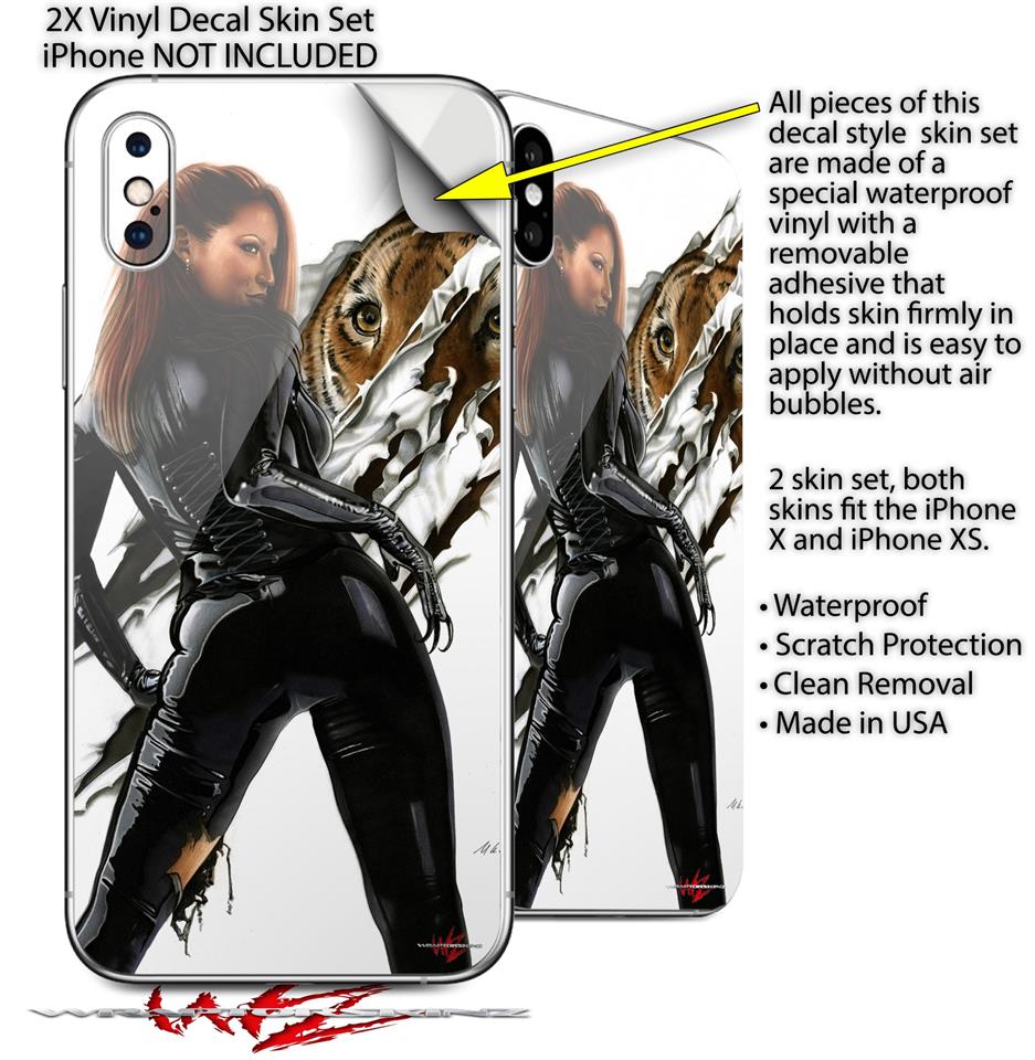 2 Decal style Skin Wraps set for Apple iPhone X and XS Cats Eye