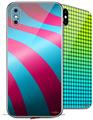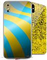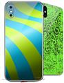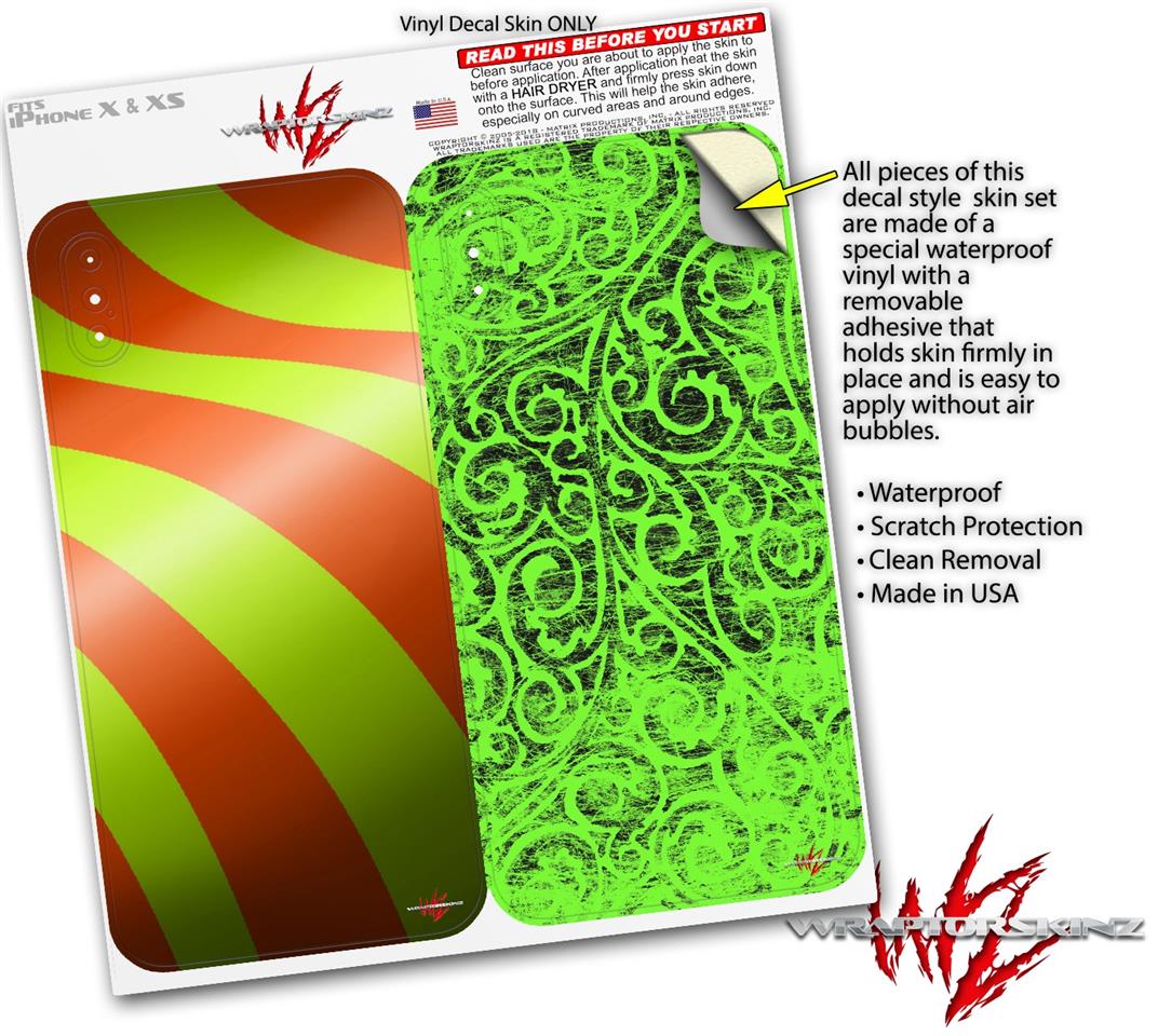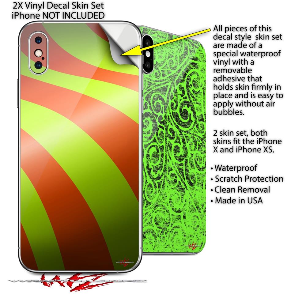 2 Decal style Skin Wraps set for Apple iPhone X and XS Two Tone Waves Neon Green Orange