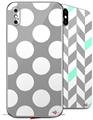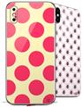 2 Decal style Skin Wraps set for Apple iPhone X and XS Kearas Polka Dots Pink On Black