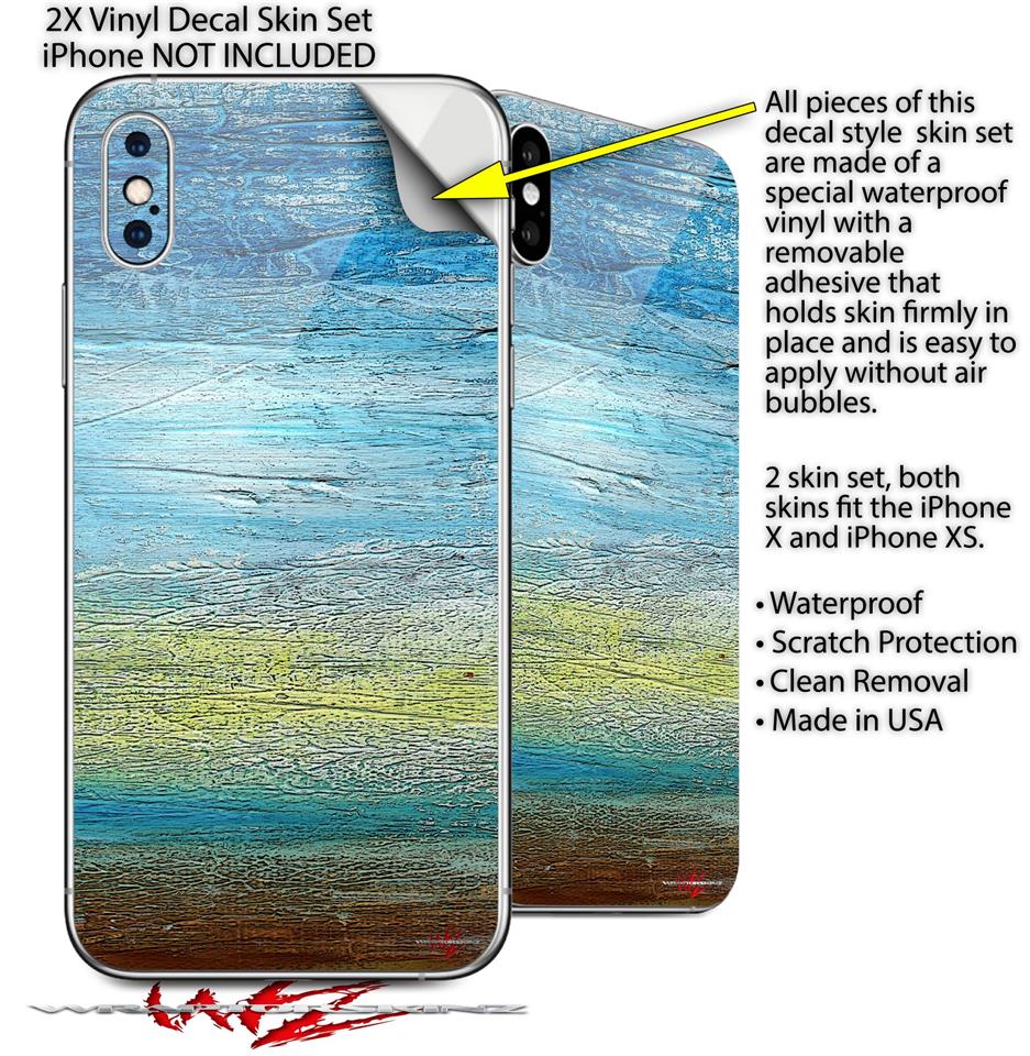 2 Decal style Skin Wraps set for Apple iPhone X and XS Landscape Abstract Beach