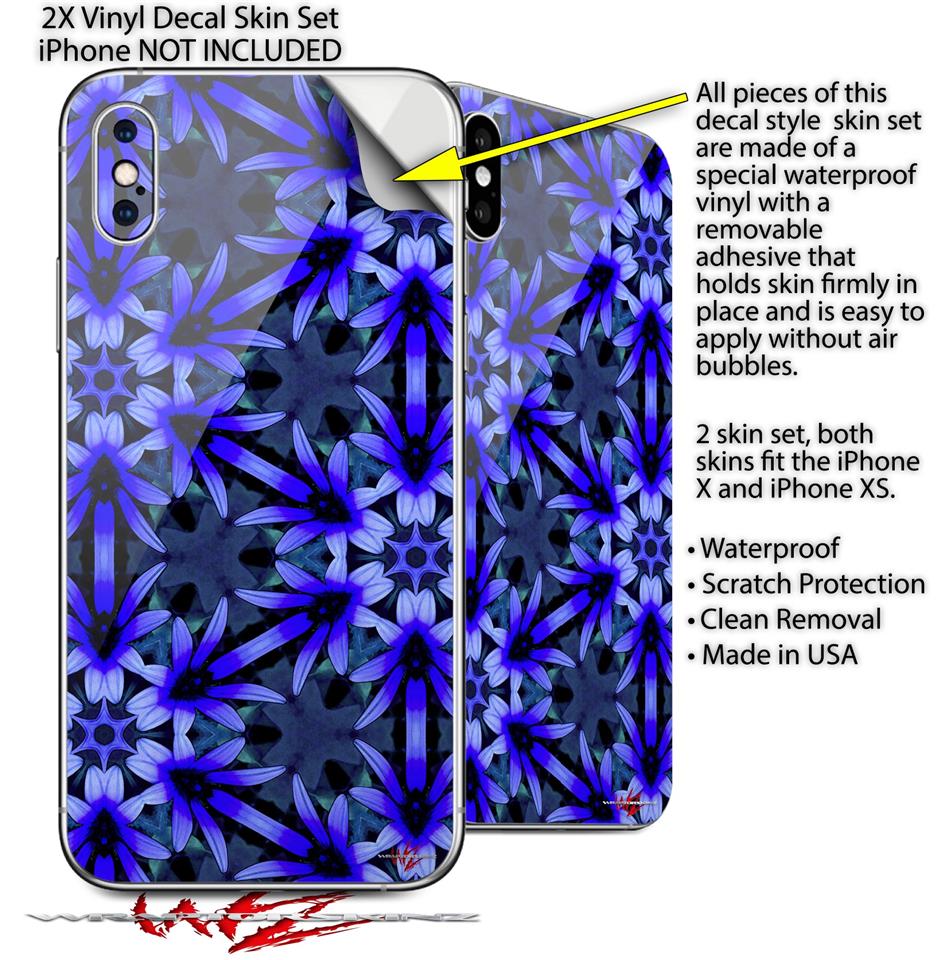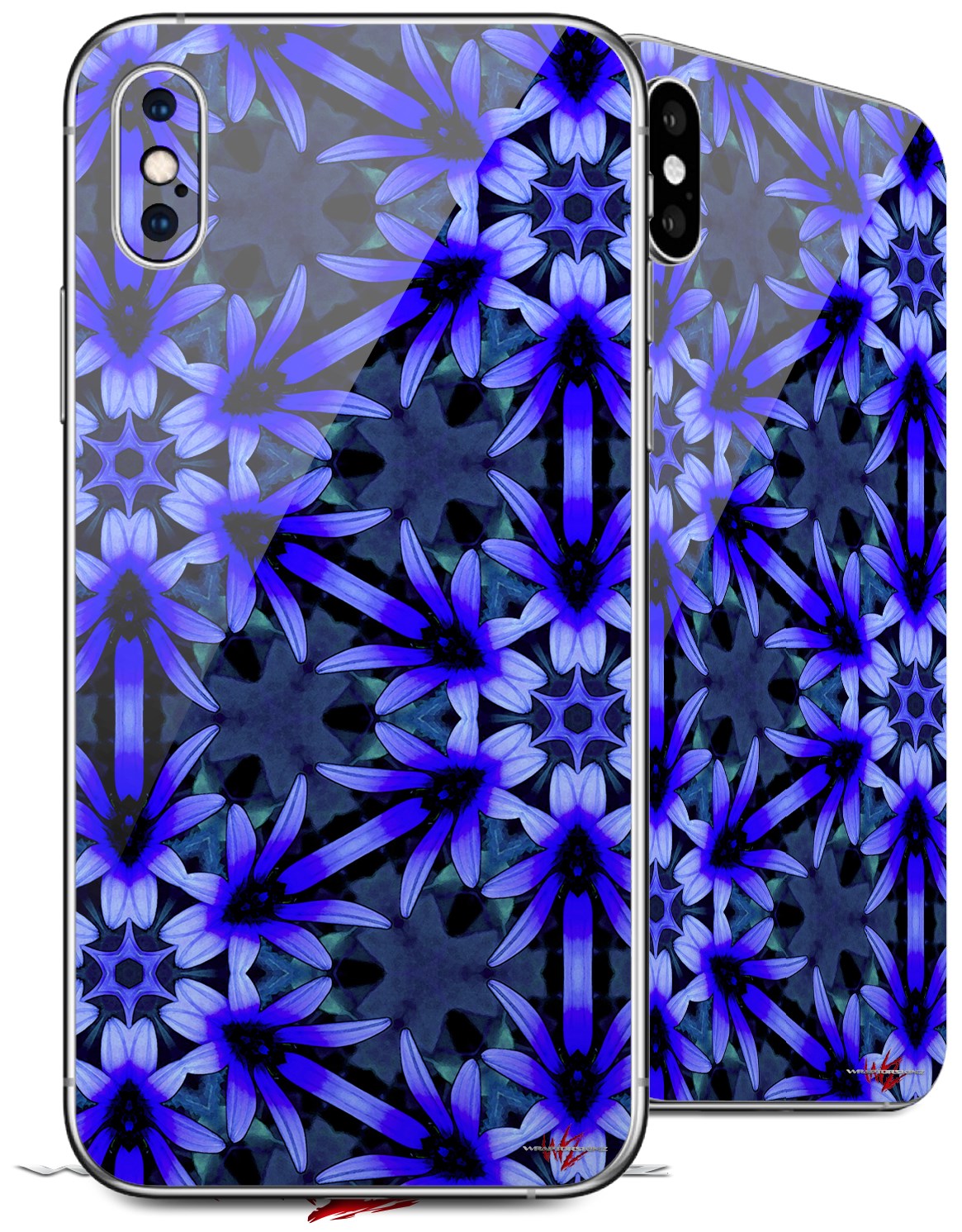 2 Decal style Skin Wraps set for Apple iPhone X and XS Daisy Blue