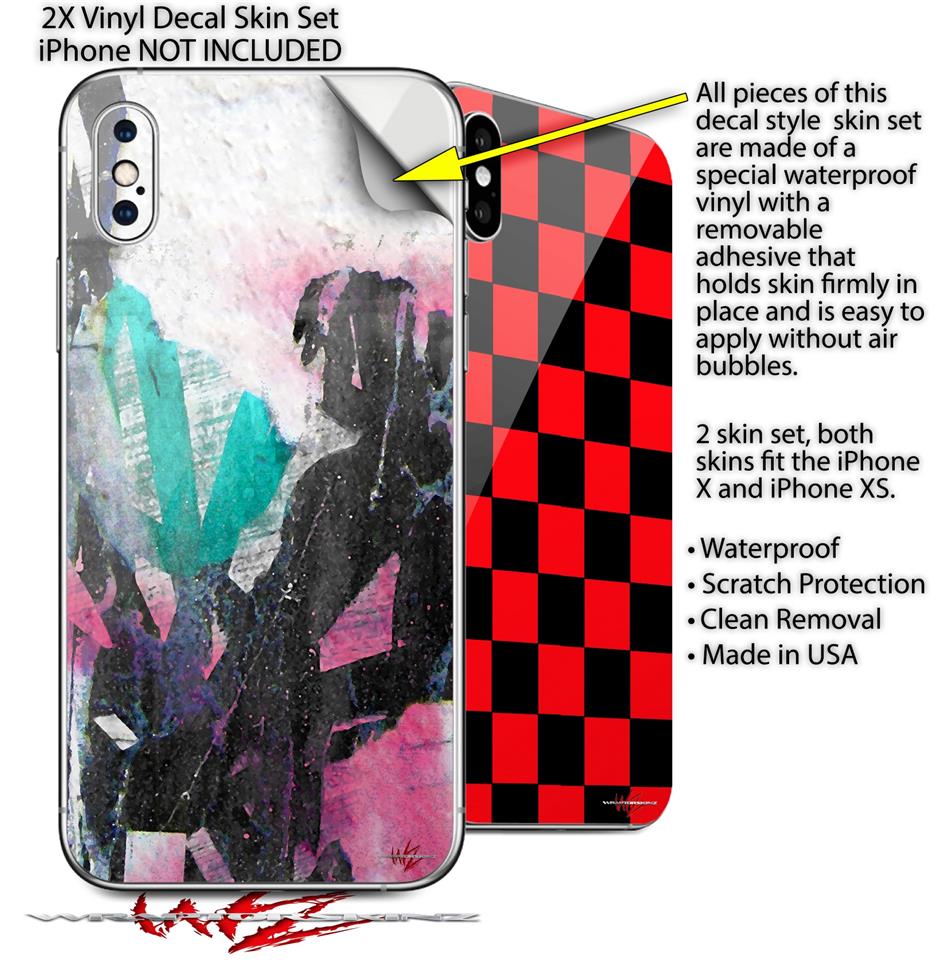 2 Decal style Skin Wraps set for Apple iPhone X and XS Graffiti Grunge