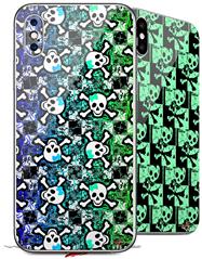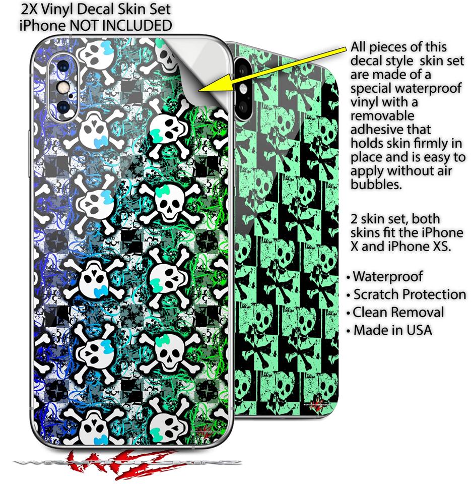 2 Decal style Skin Wraps set for Apple iPhone X and XS Splatter Girly Skull Rainbow