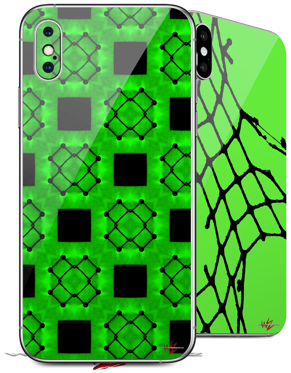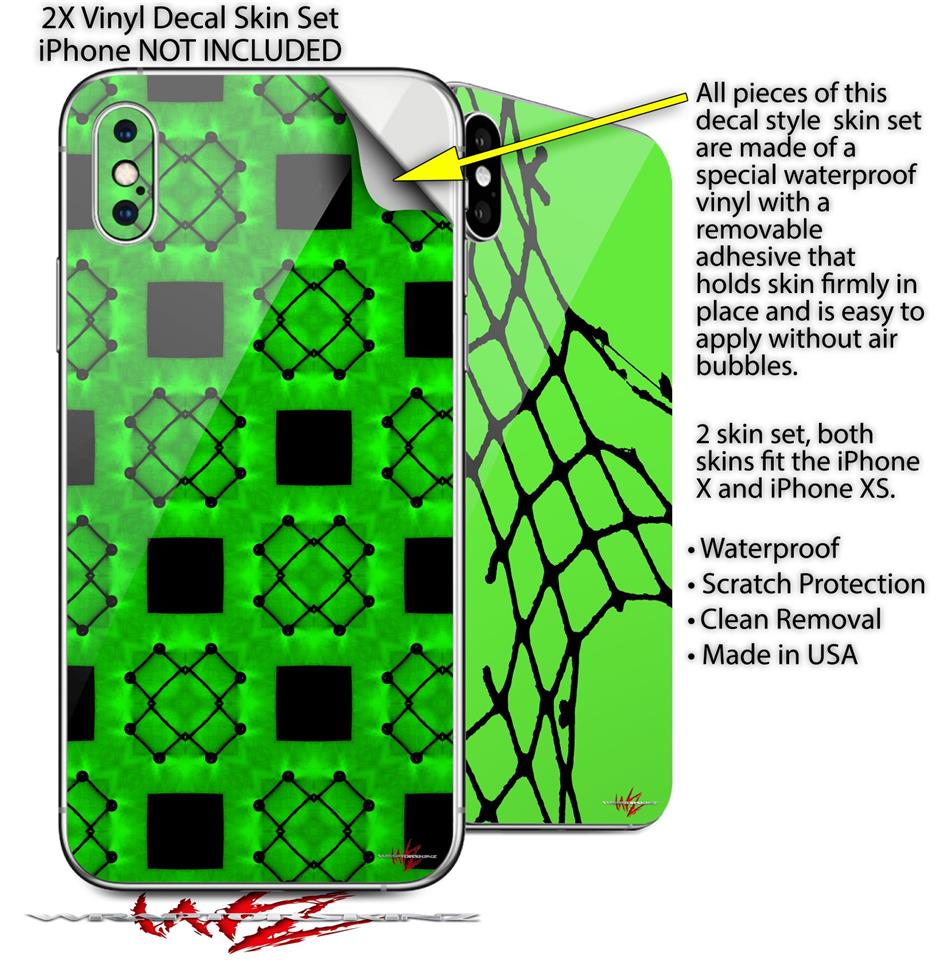 2 Decal style Skin Wraps set for Apple iPhone X and XS Criss Cross Green