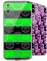 2 Decal style Skin Wraps set for Apple iPhone X and XS Skull Stripes Blue