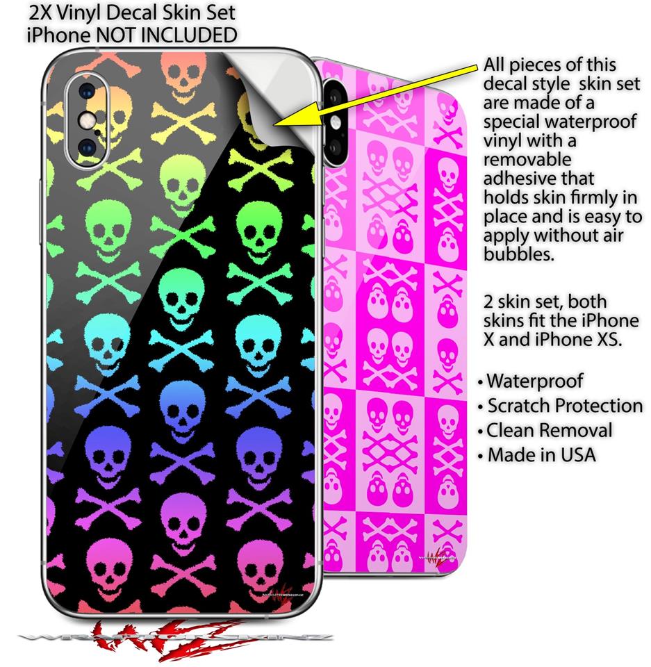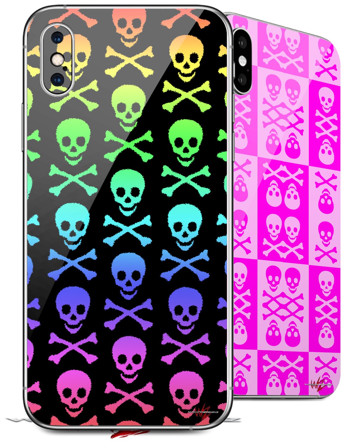 2 Decal style Skin Wraps set for Apple iPhone X and XS Skull and Crossbones Rainbow