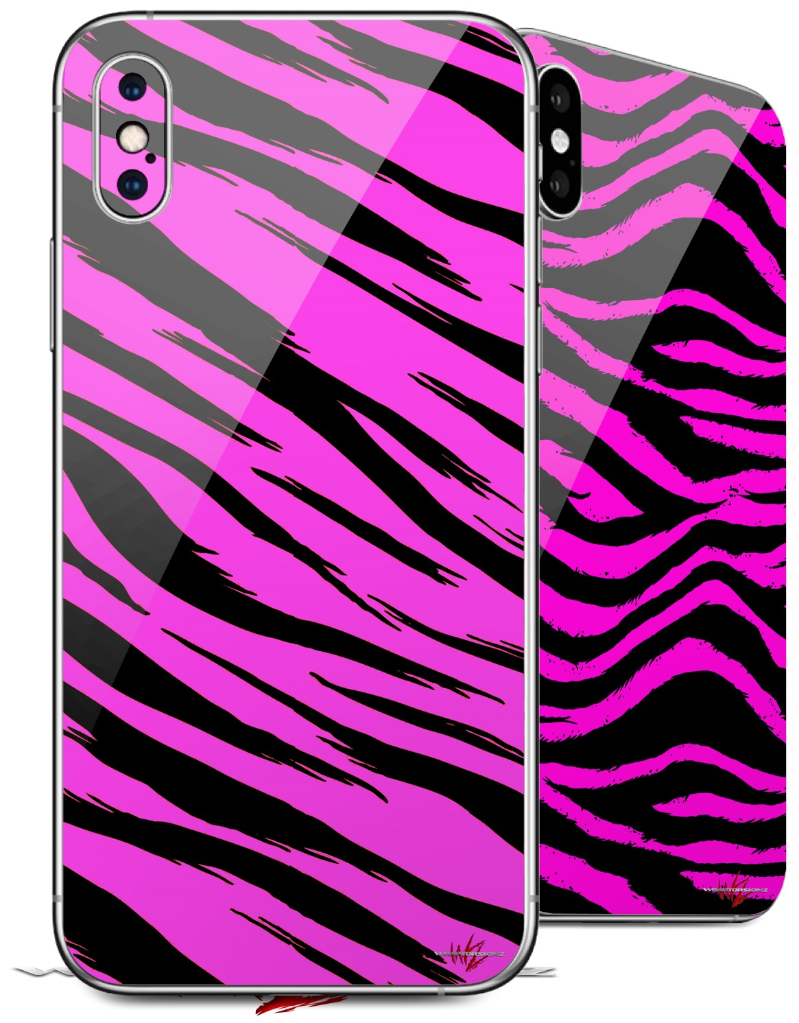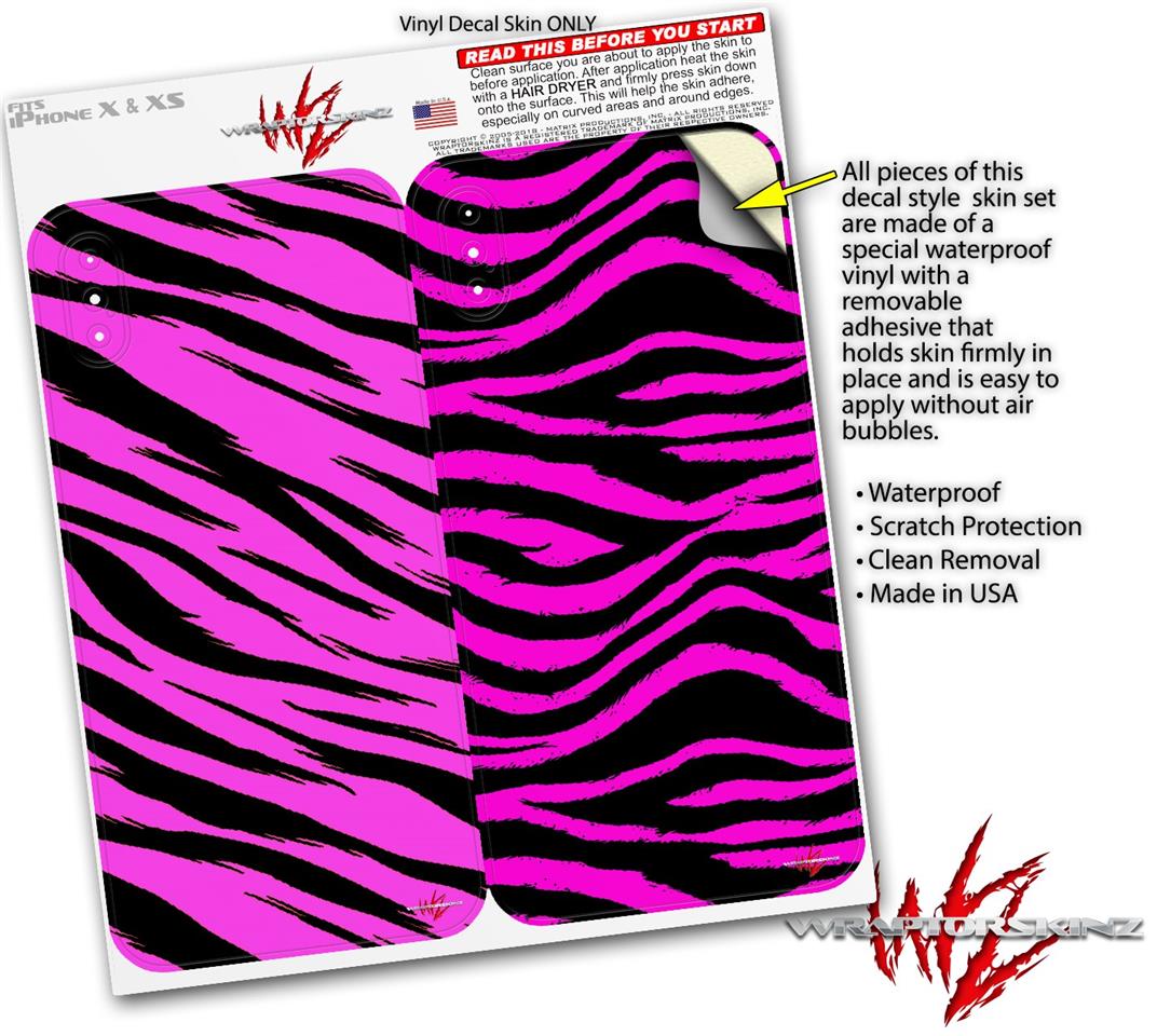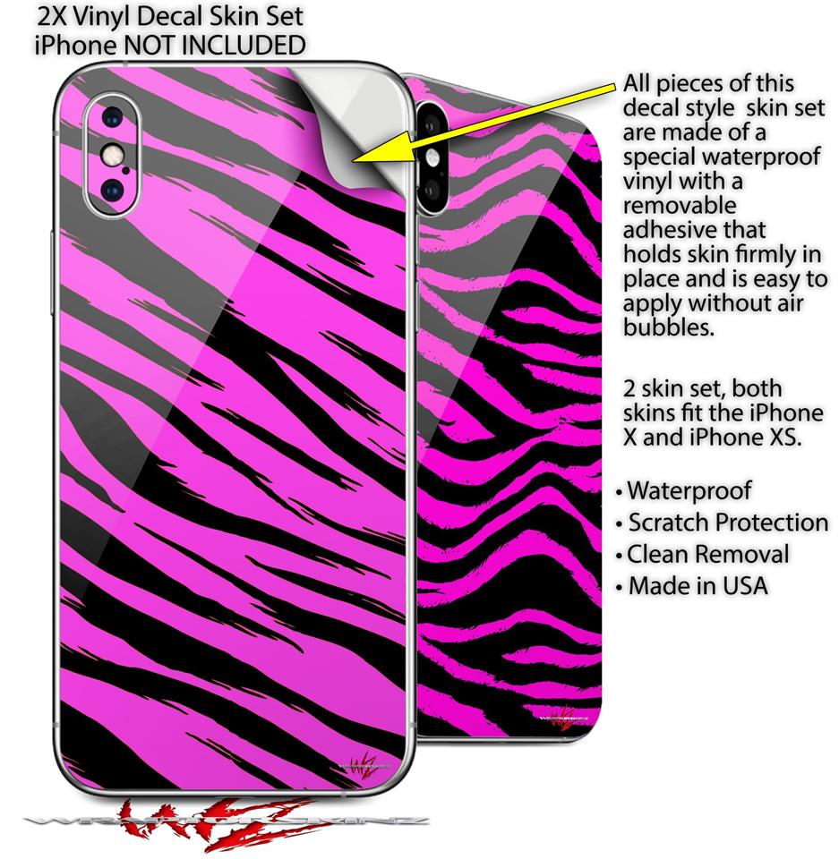 2 Decal style Skin Wraps set for Apple iPhone X and XS Pink Tiger