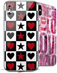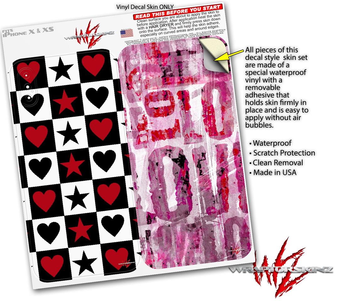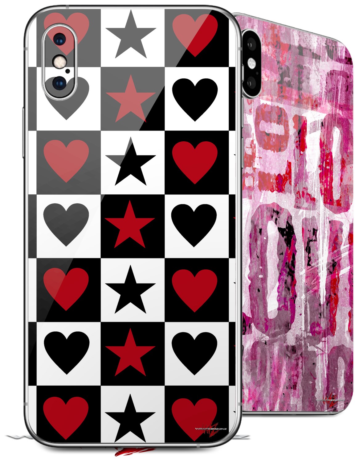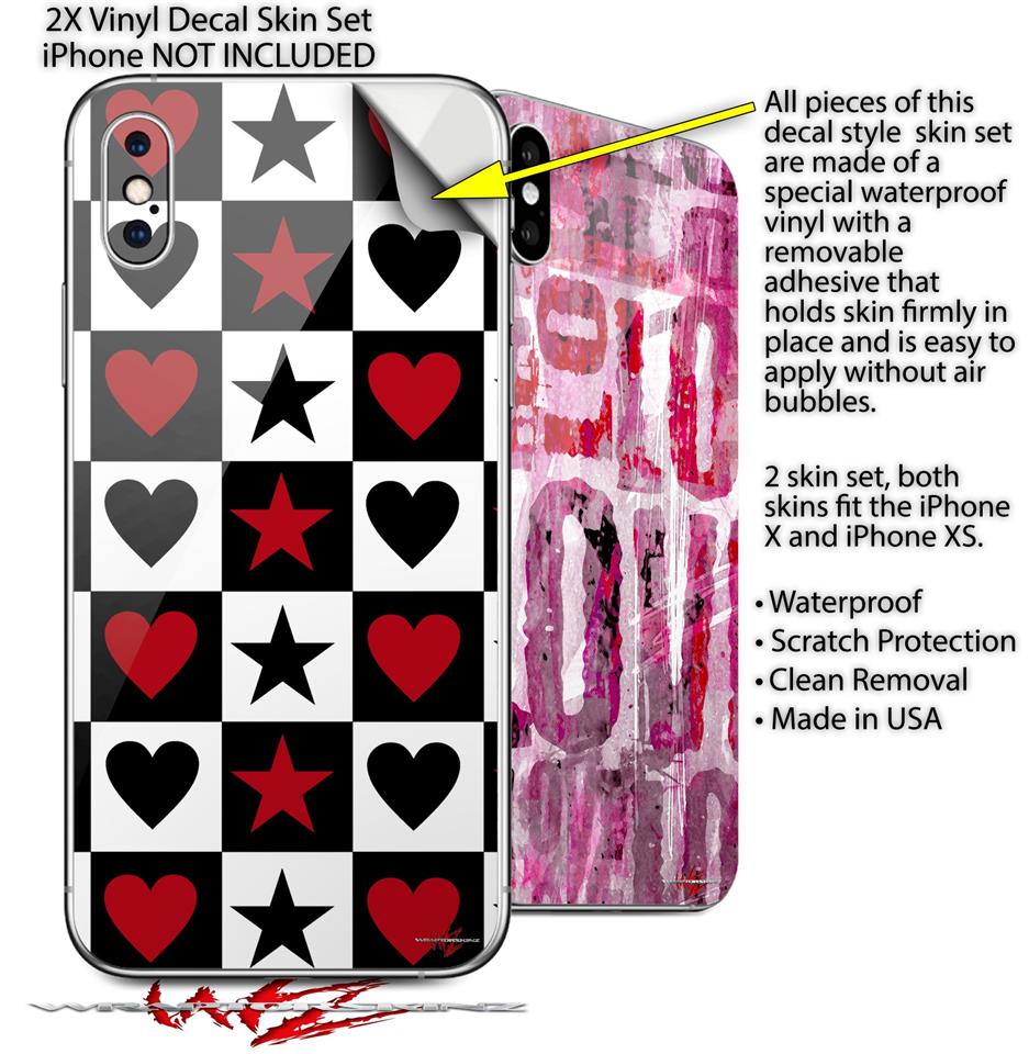 2 Decal style Skin Wraps set for Apple iPhone X and XS Hearts and Stars Red