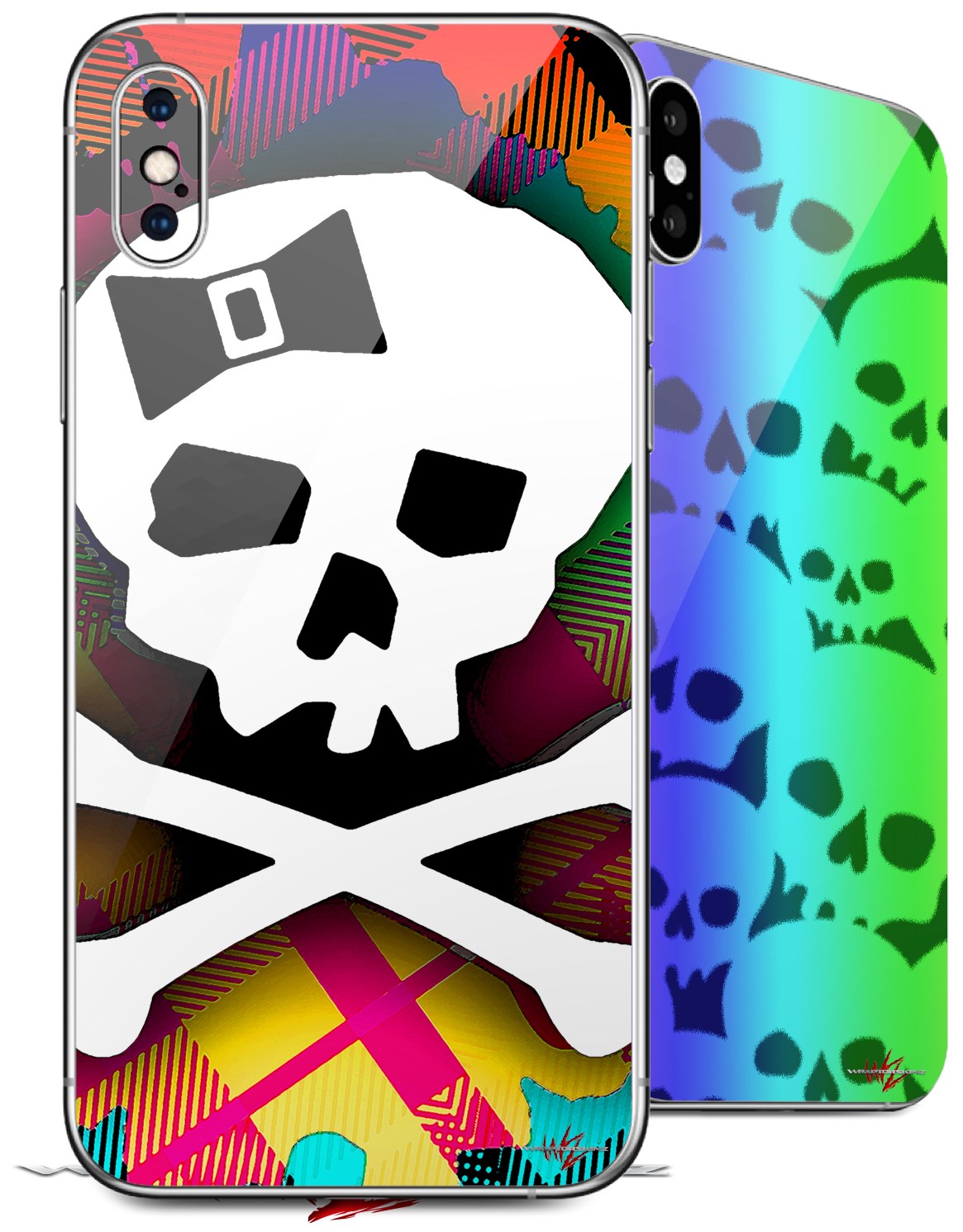 2 Decal style Skin Wraps set for Apple iPhone X and XS Rainbow Plaid Skull