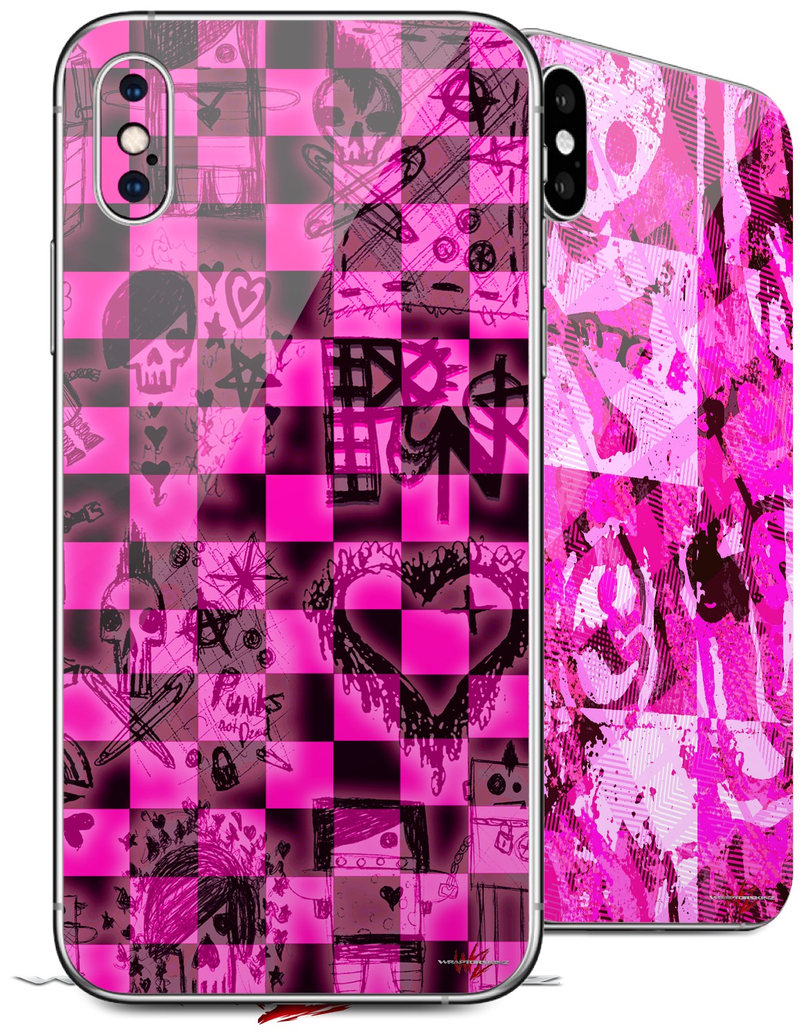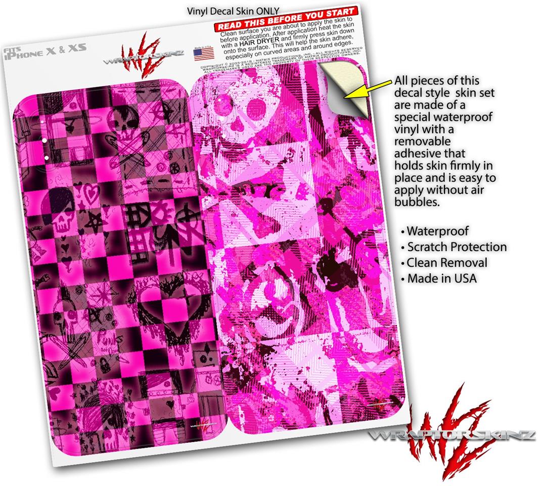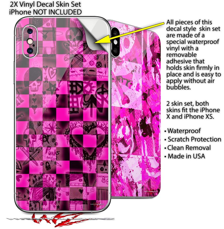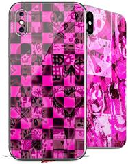 2 Decal style Skin Wraps set for Apple iPhone X and XS Pink Checkerboard Sketches