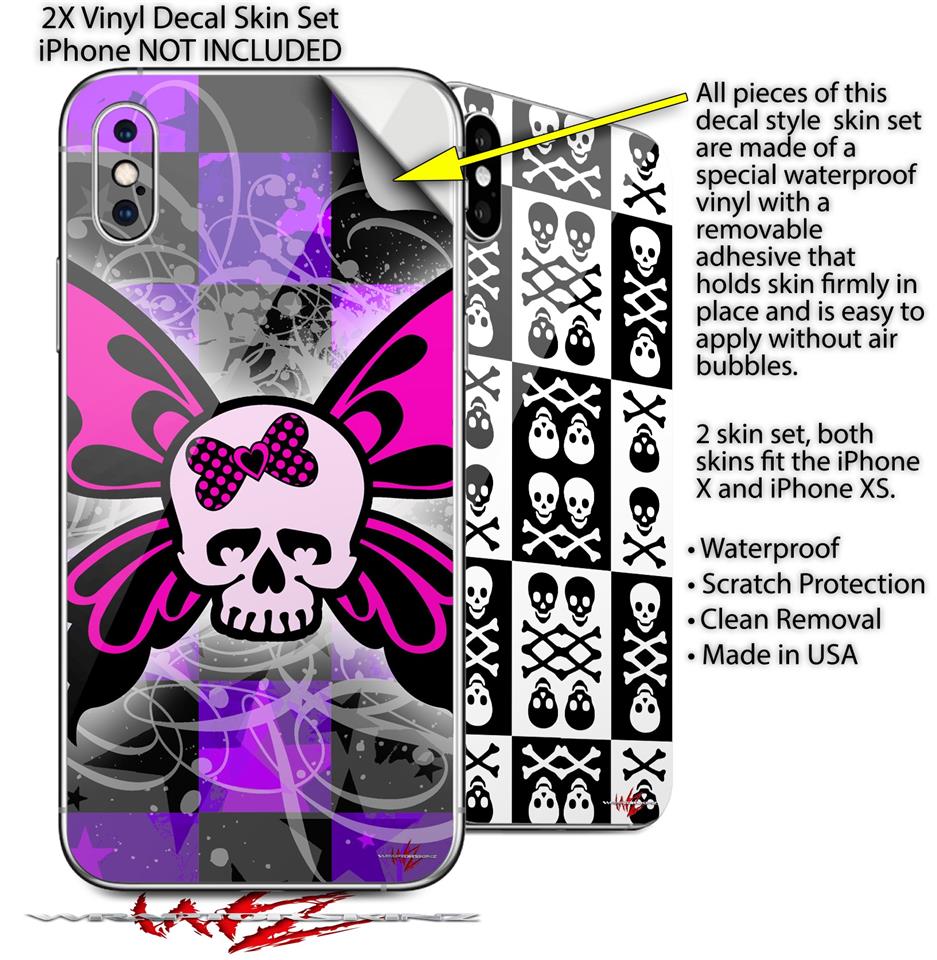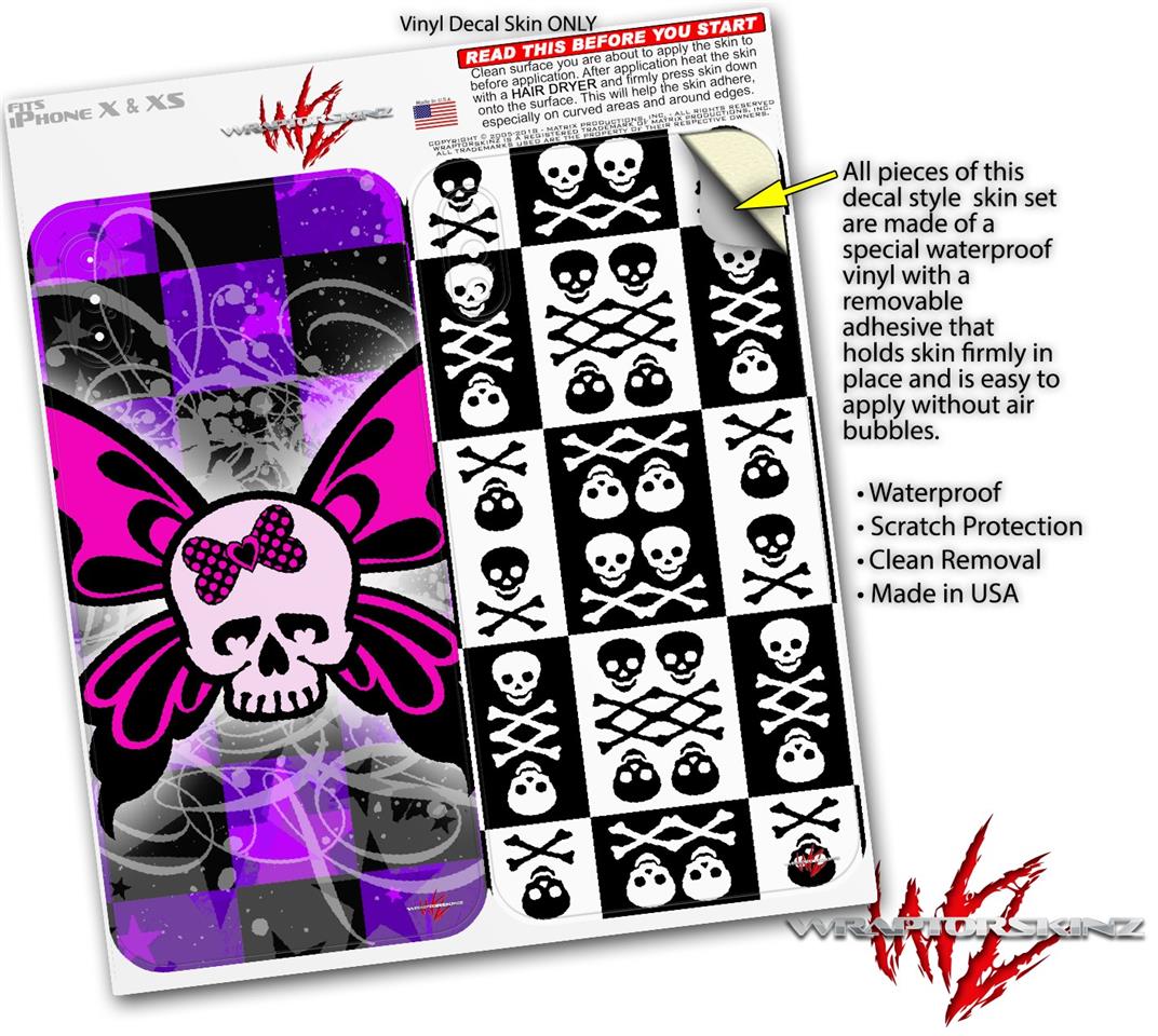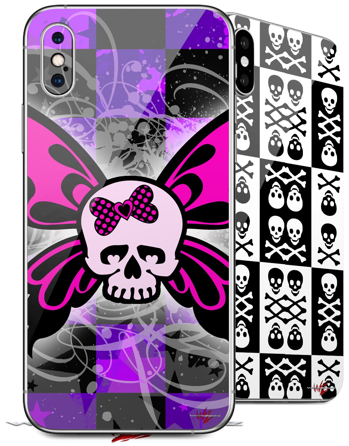 2 Decal style Skin Wraps set for Apple iPhone X and XS Butterfly Skull