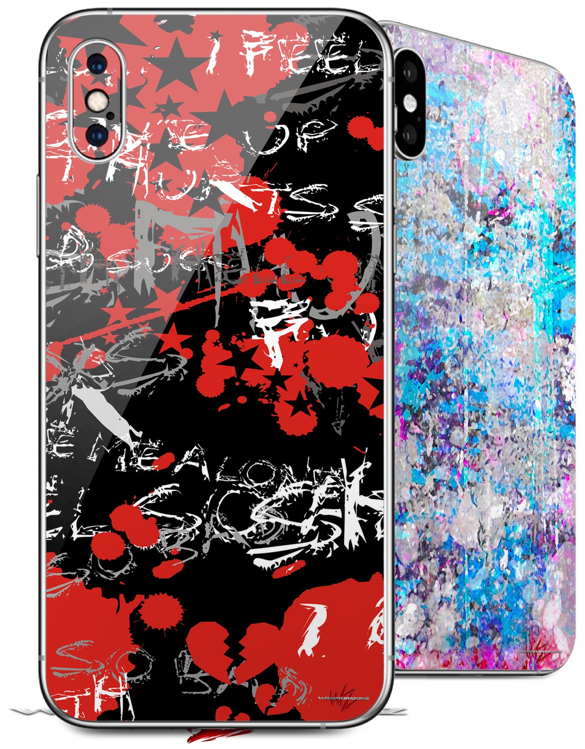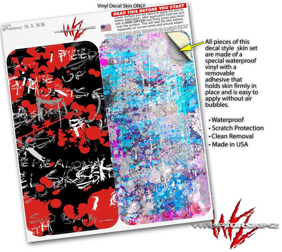 2 Decal style Skin Wraps set for Apple iPhone X and XS Emo Graffiti