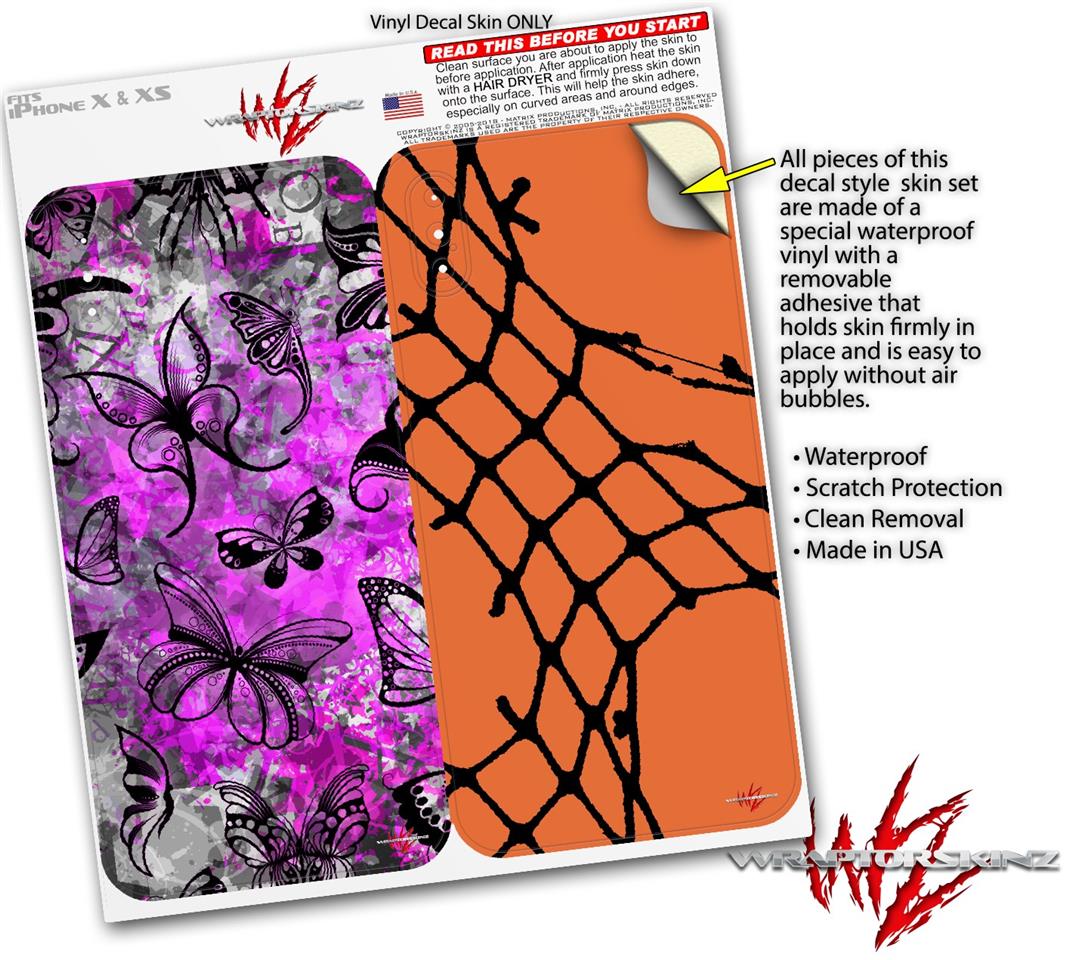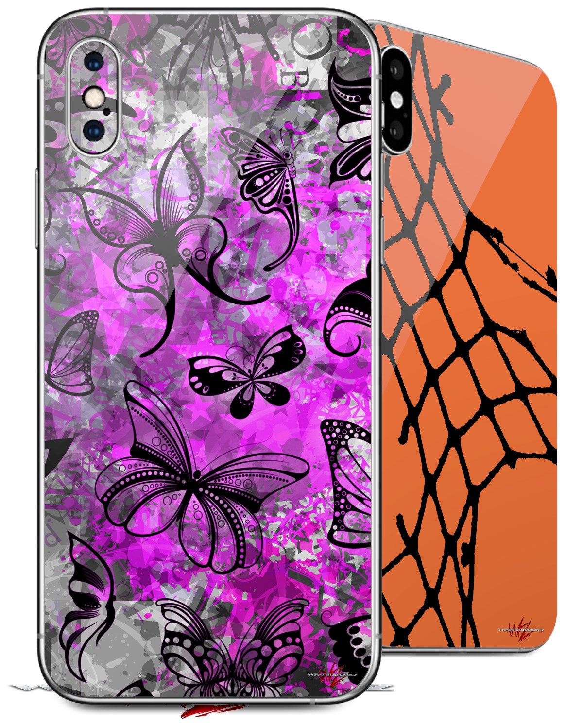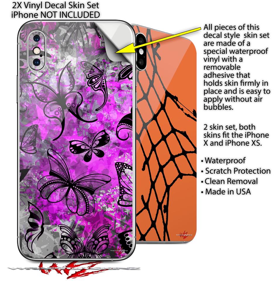 2 Decal style Skin Wraps set for Apple iPhone X and XS Butterfly Graffiti