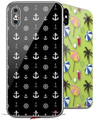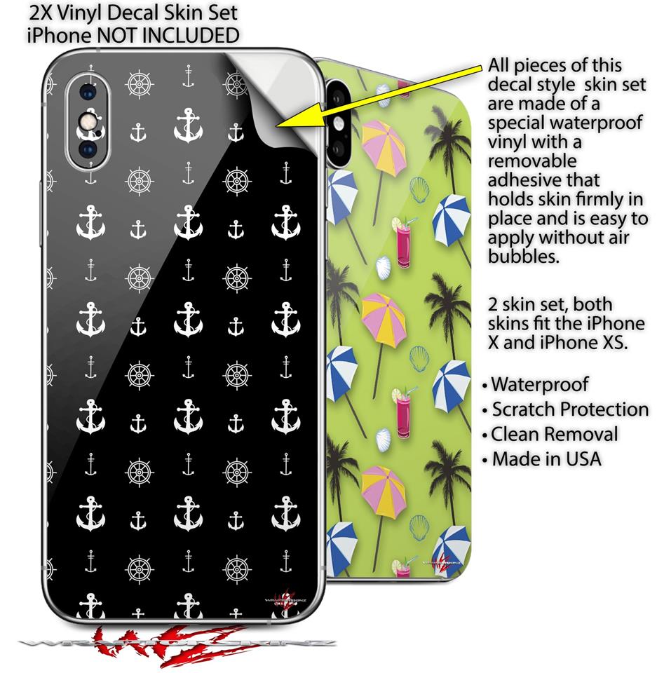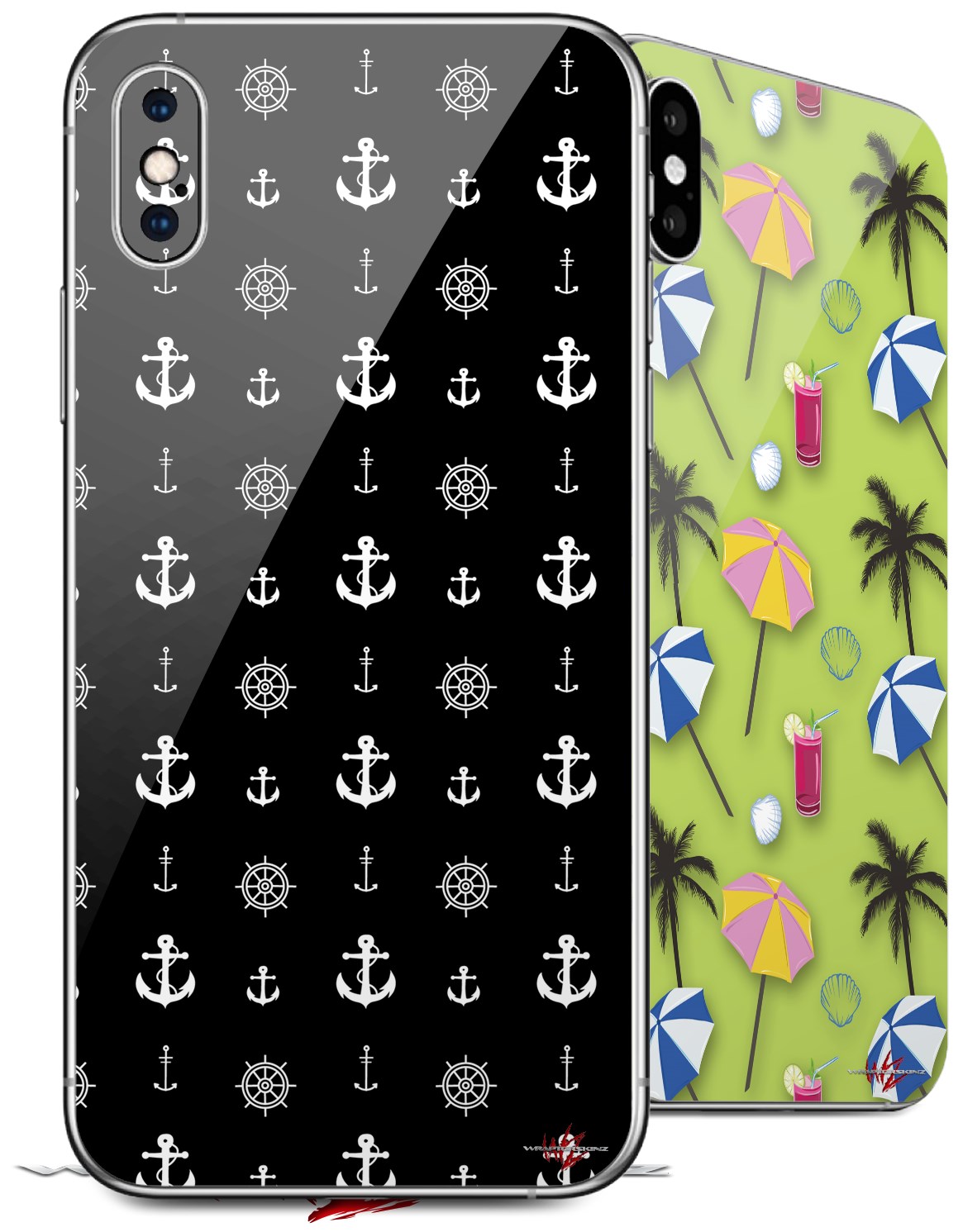 2 Decal style Skin Wraps set for Apple iPhone X and XS Nautical Anchors Away 02 Black
