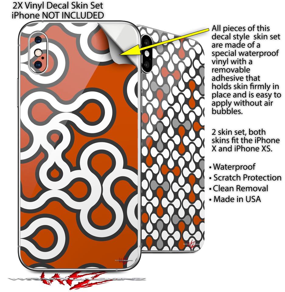 2 Decal style Skin Wraps set for Apple iPhone X and XS Locknodes 03 Burnt Orange