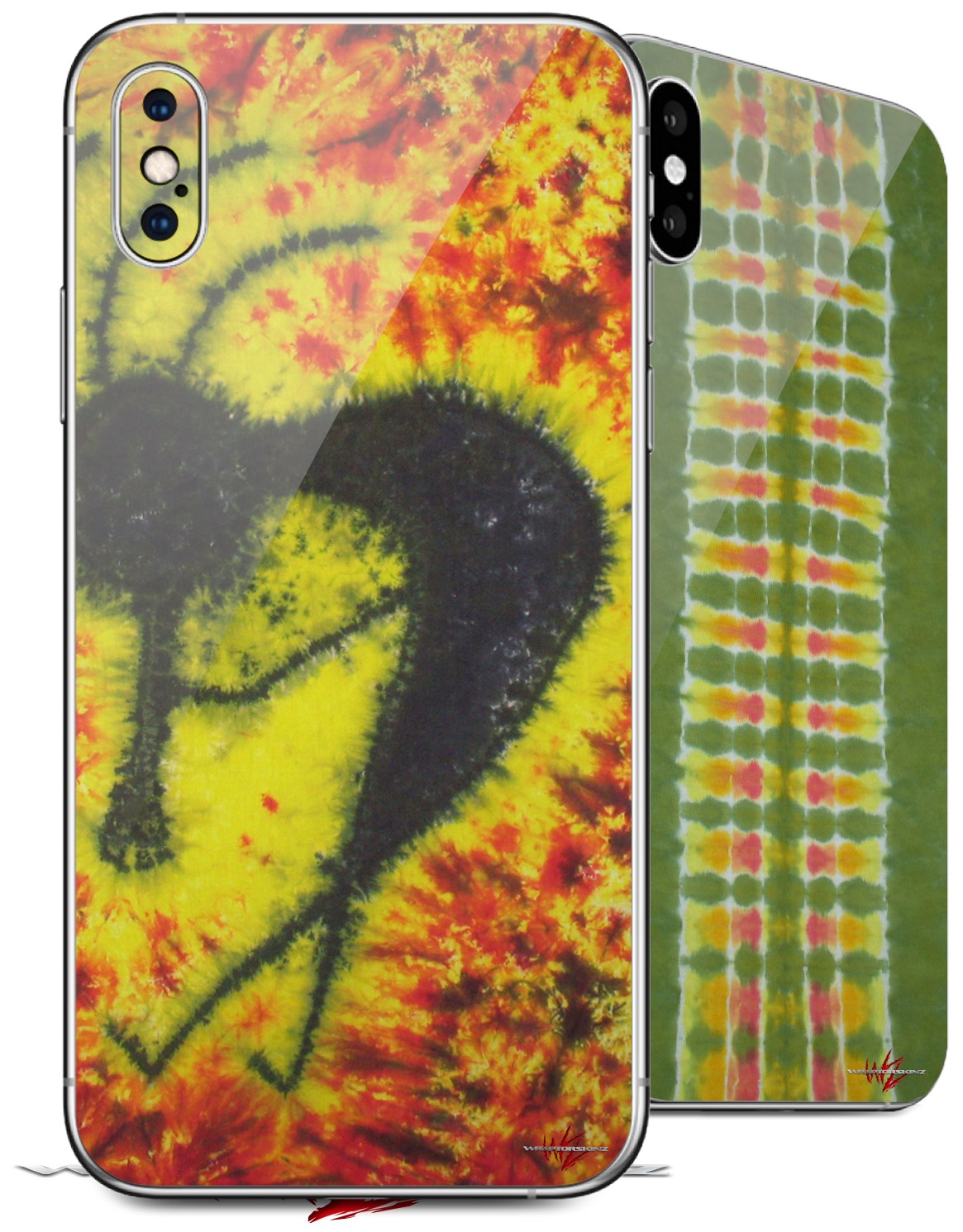 2 Decal style Skin Wraps set for Apple iPhone X and XS Tie Dye Kokopelli