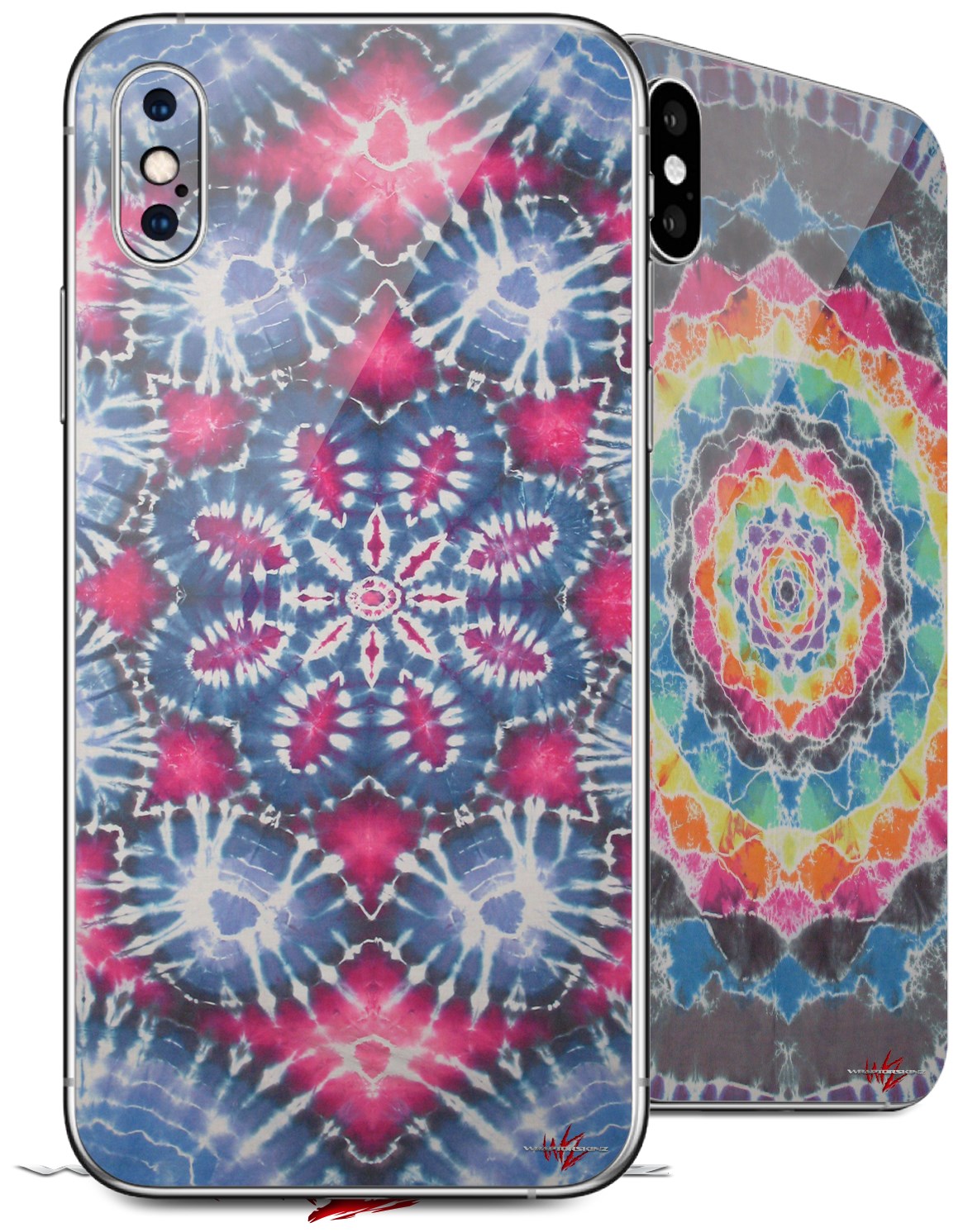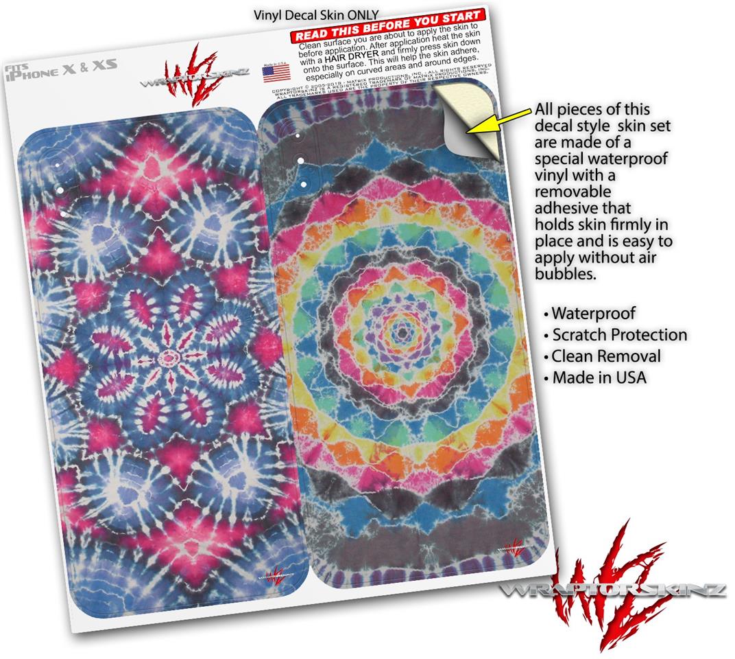 2 Decal style Skin Wraps set for Apple iPhone X and XS Tie Dye Star 102