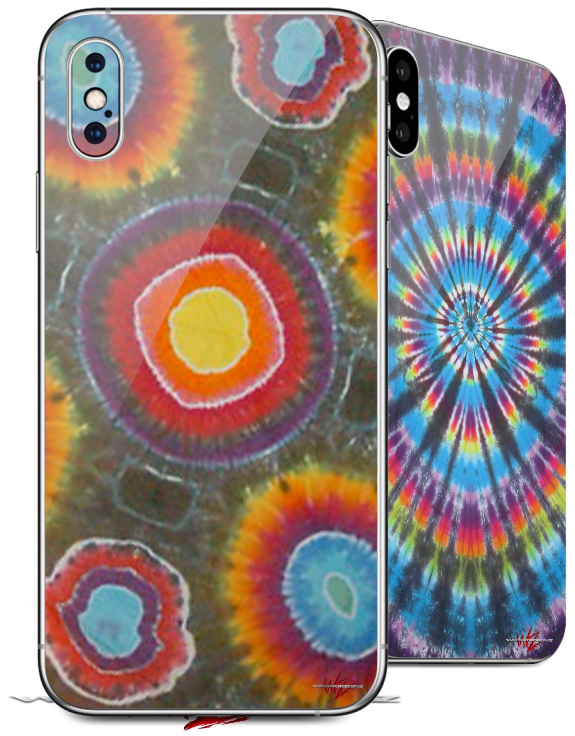 2 Decal style Skin Wraps set for Apple iPhone X and XS Tie Dye Circles 100
