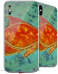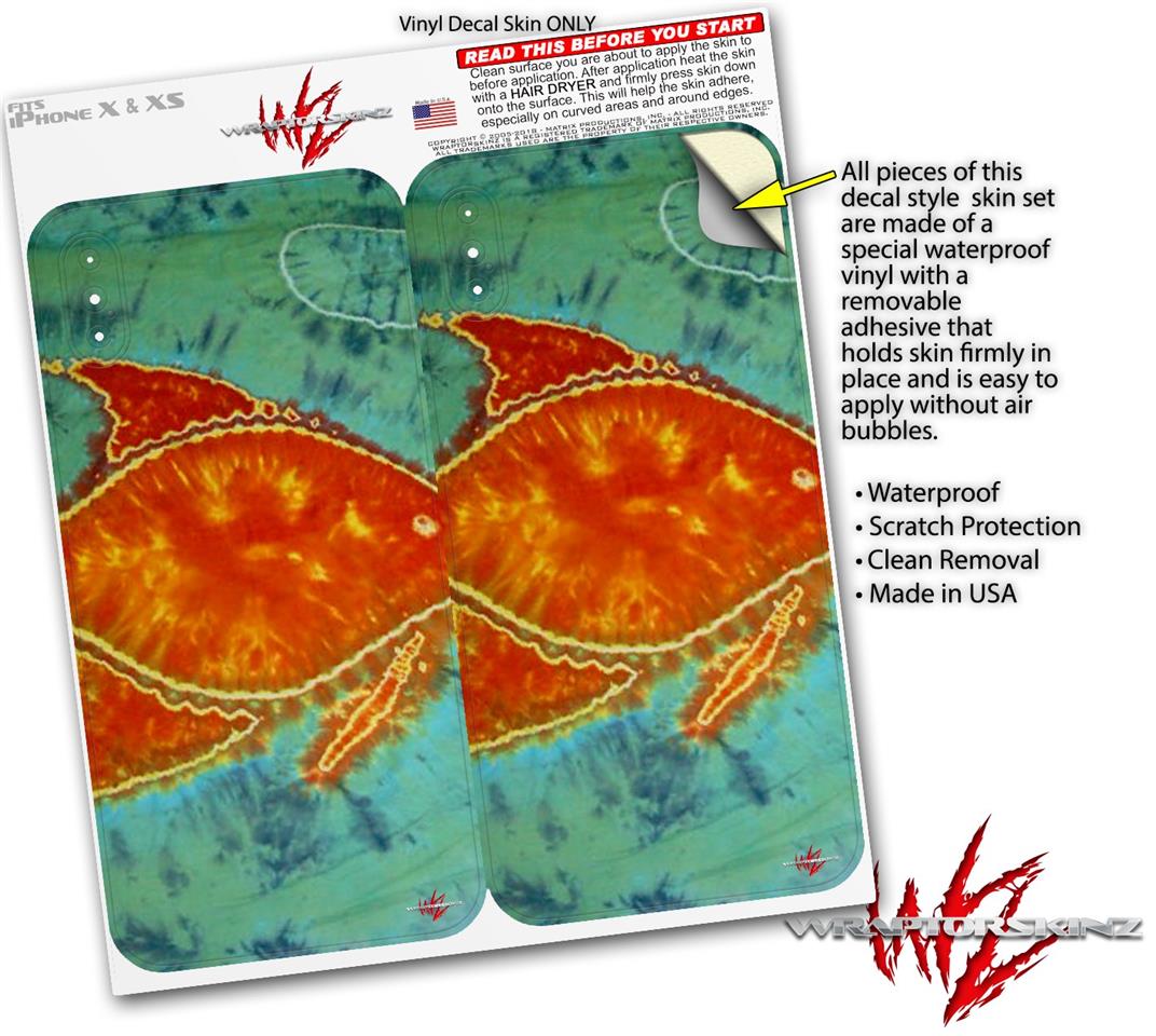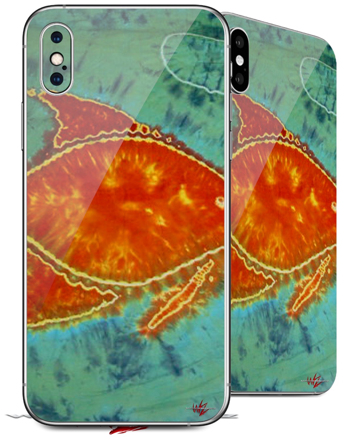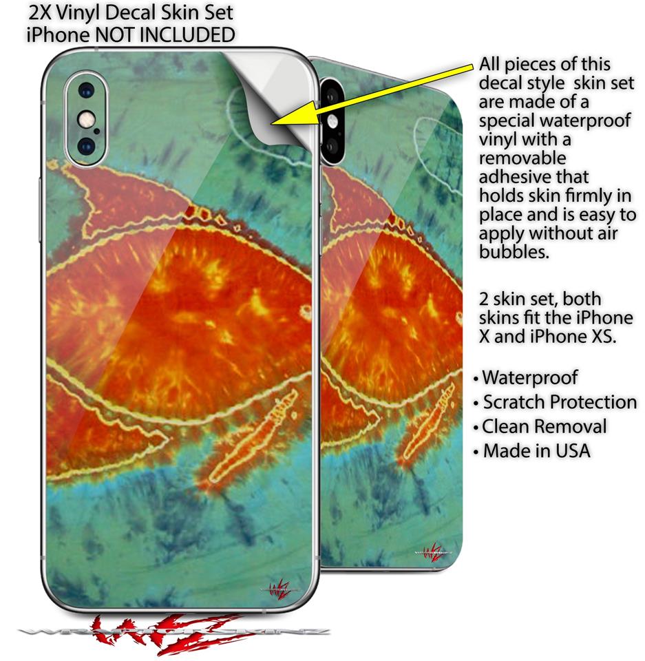 2 Decal style Skin Wraps set for Apple iPhone X and XS Tie Dye Fish 100