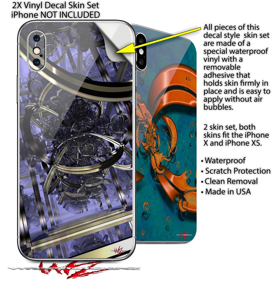 2 Decal style Skin Wraps set for Apple iPhone X and XS Gyro Lattice