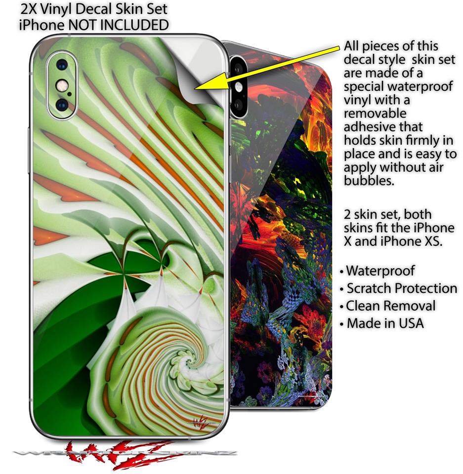 2 Decal style Skin Wraps set for Apple iPhone X and XS Chlorophyll