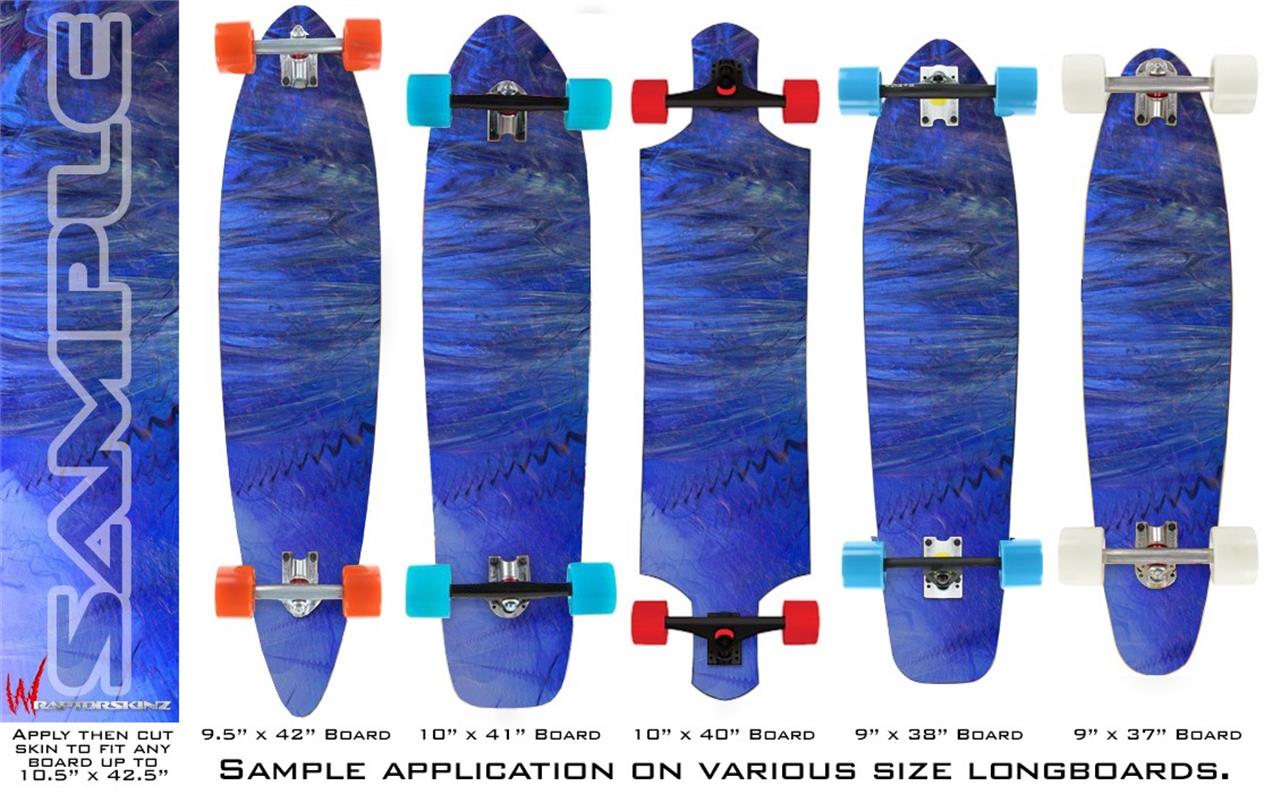 Our longboard skins are made so that one size fits boards up to 10” wide x 42” long. This means after applying the skin it you will trimming to fit you’re the shape of your board with a sharp utility knife.