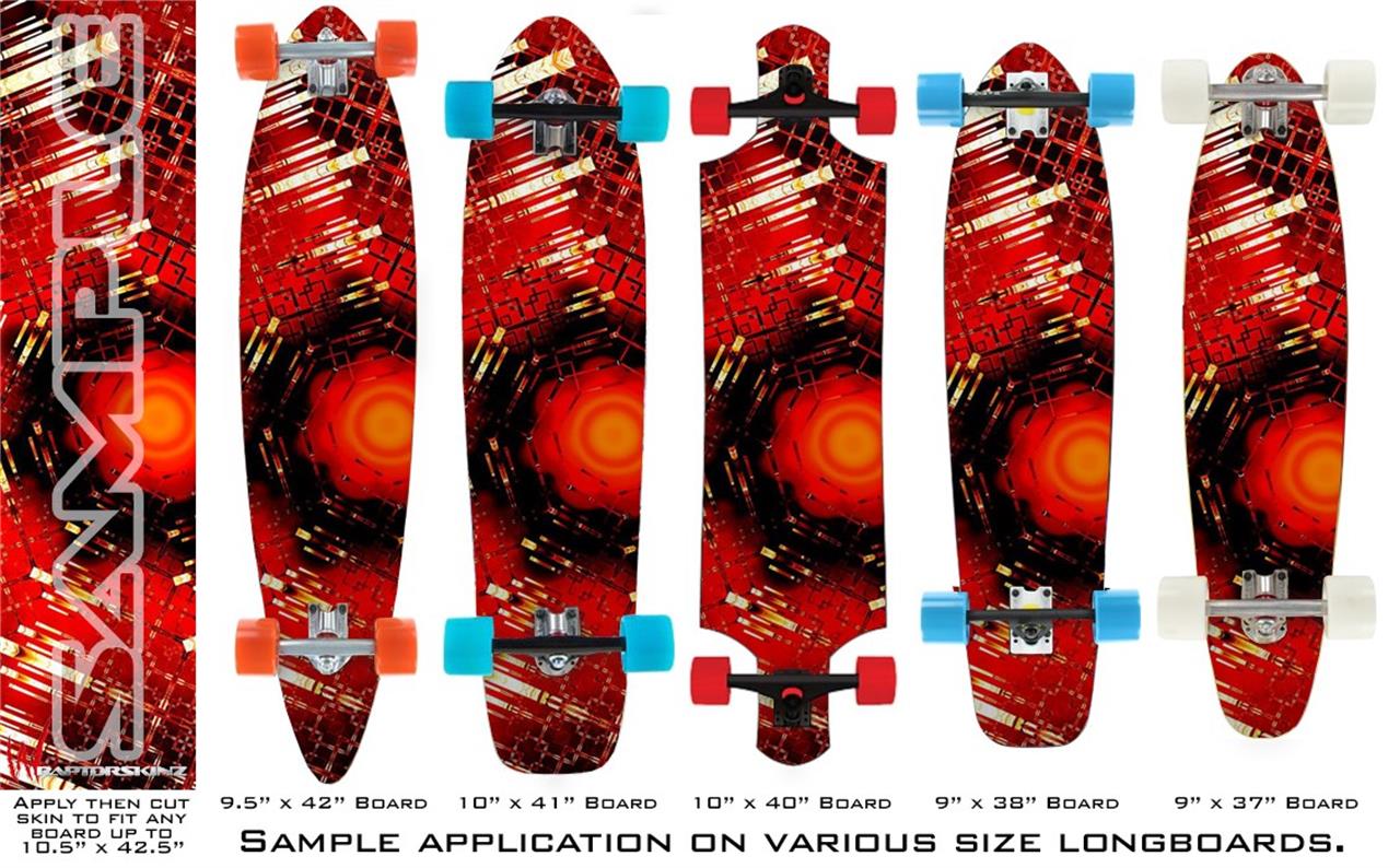 Our longboard skins are made so that one size fits boards up to 10” wide x 42” long. This means after applying the skin it you will trimming to fit you’re the shape of your board with a sharp utility knife.