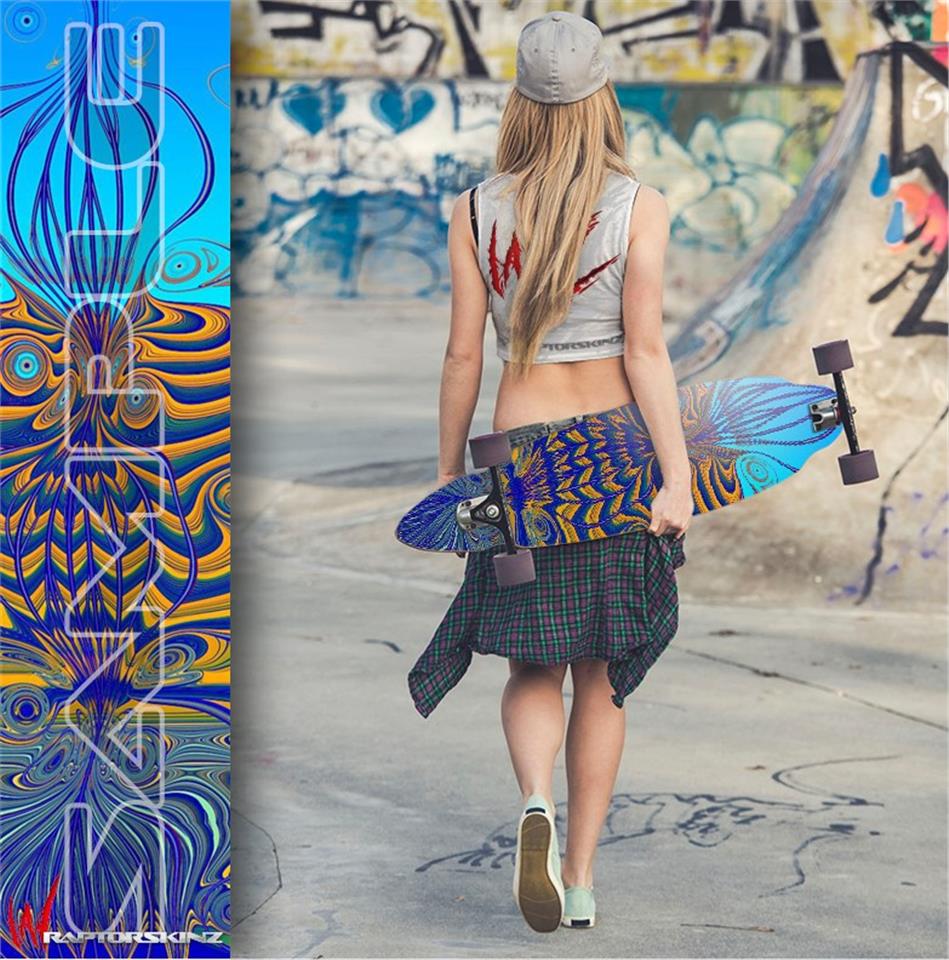 Professional 5 year indoor/outdoor vinyl with air release adhesive allowing easy application and no air bubbles. Printed with the latest UV protected inks to resist fading for up to 3 year in direct sunlight. Laminated to add a high gloss finish and added protection. Our board skins look amazing, printed in high resolution for unbeatable color and razor sharp designs.