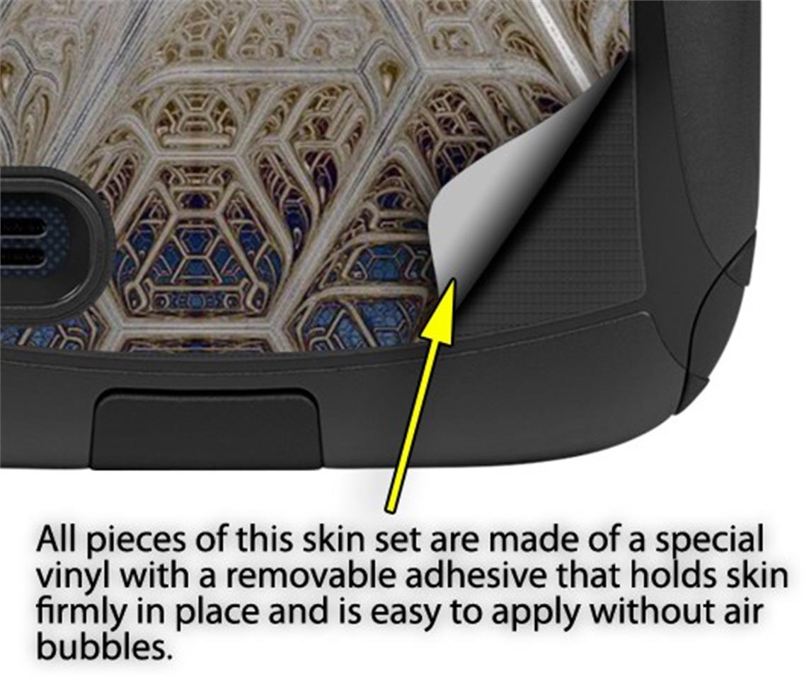 WraptorSkinz® are self adhering vinyl decal style skins and are a great way to add a new look to your protective case. WraptorSkinz® are a composite of two layers of commercial grade materials. The bottom layer is a soft, flexible vinyl with a special removable adhesive that is easily positioned, applied without air bubbles. Next we print the bottom layer with UV protected, fade resistant inks that deliver superb photo quality designs in vibrant colors. Finally we bond a professional grade laminate over the entire skin adding a glossy protective finish.