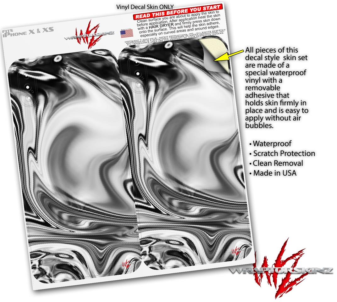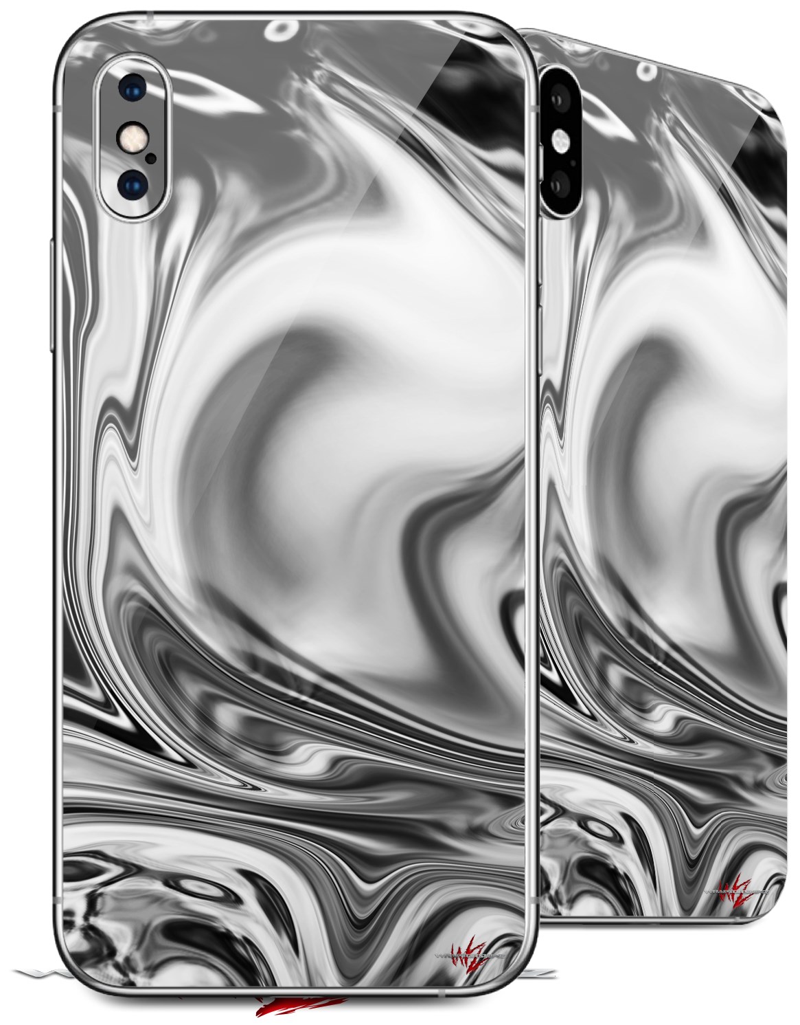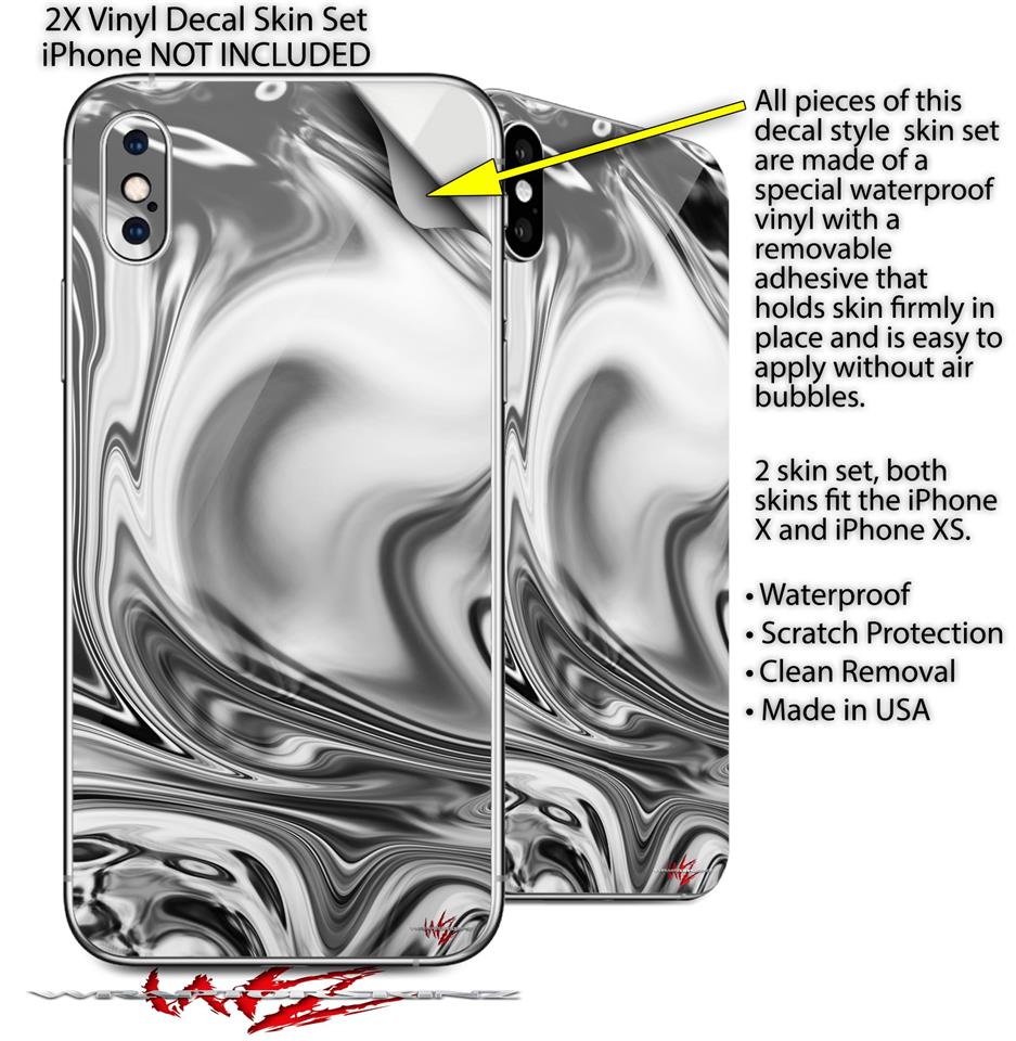 2 Decal style Skin Wraps set compatible with Apple iPhone X and XS Liquid Metal Chrome